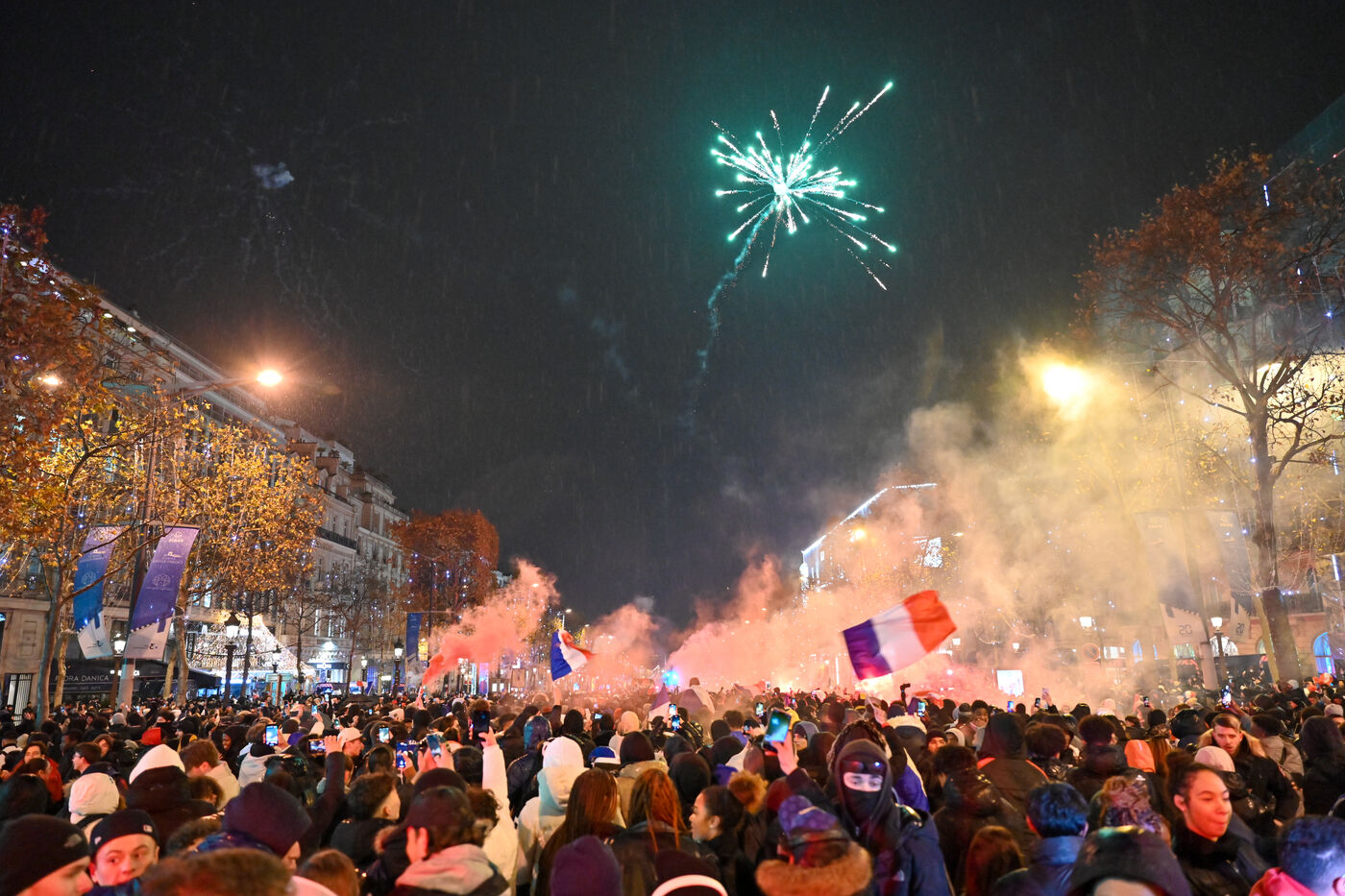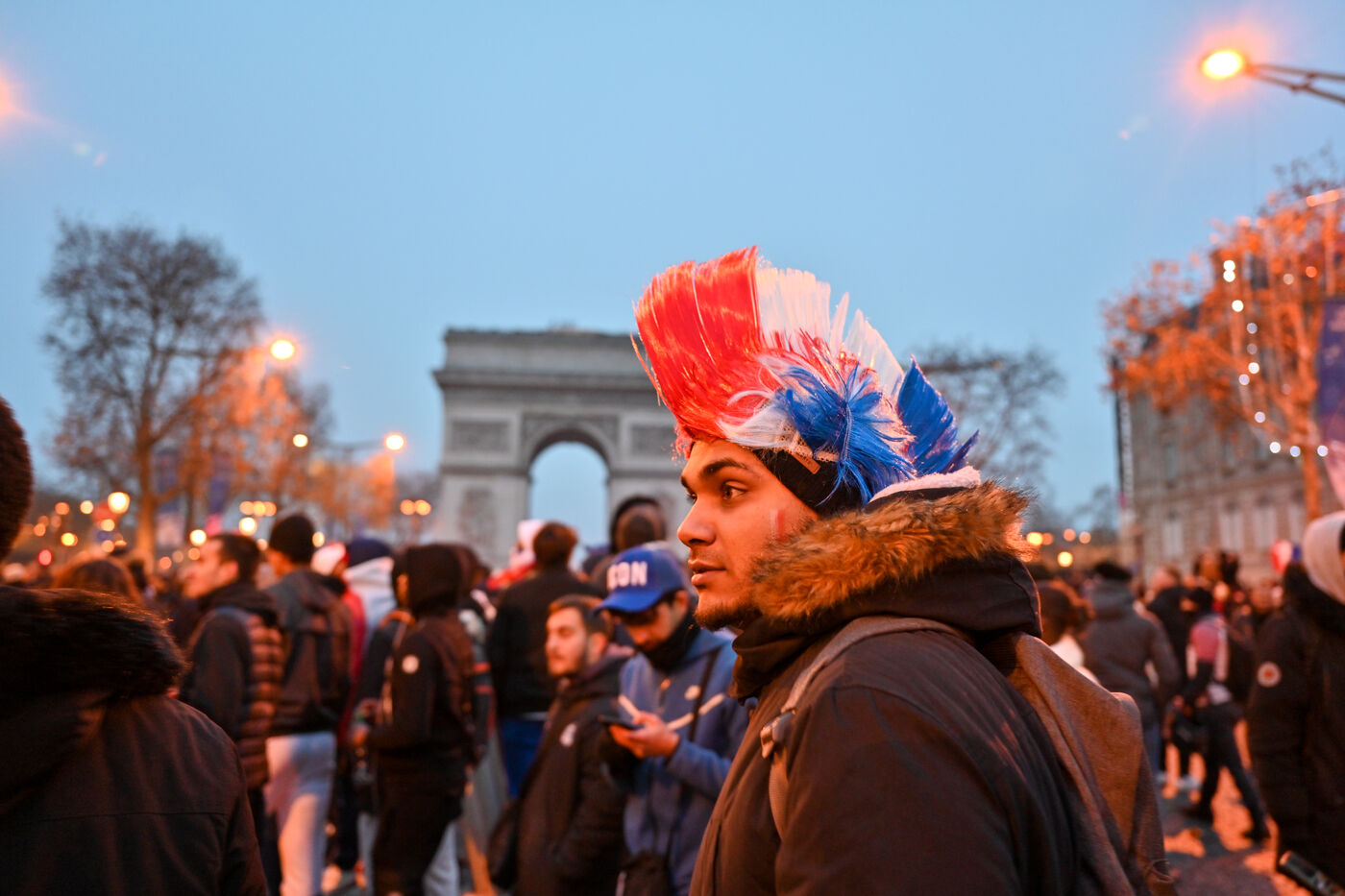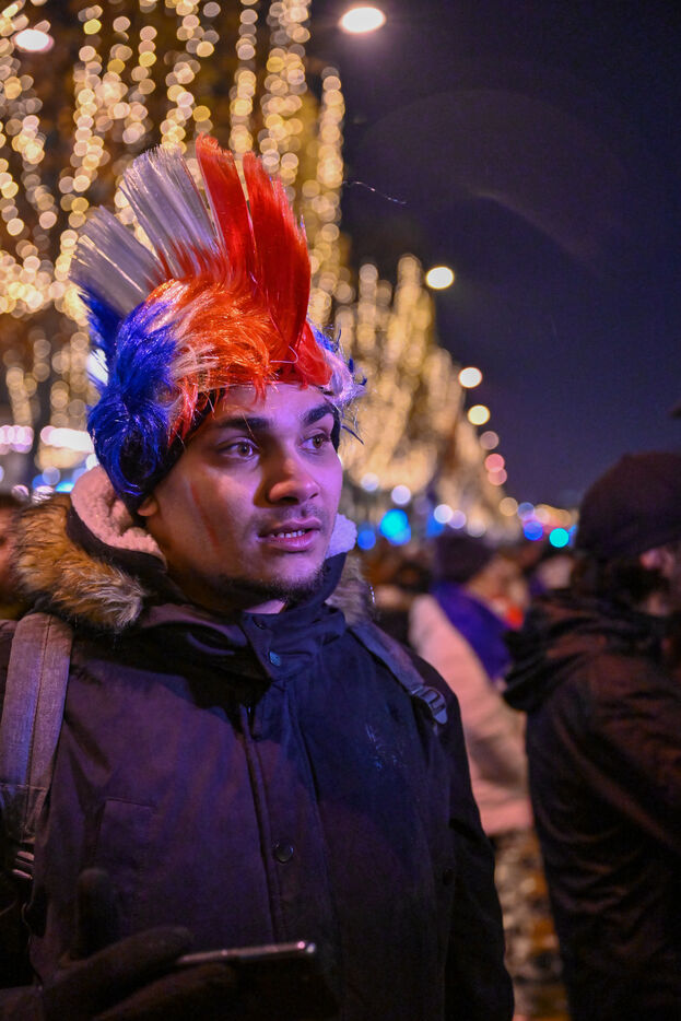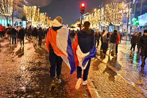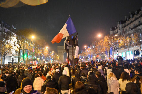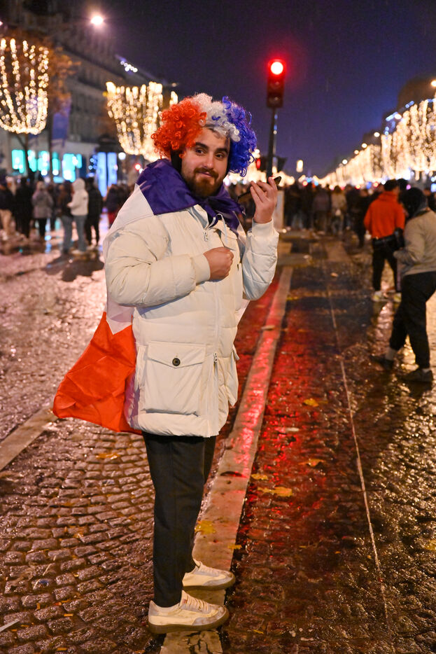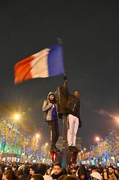 French supporters during the France-Argentina world cup final on the Champs-Elysées.