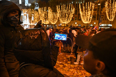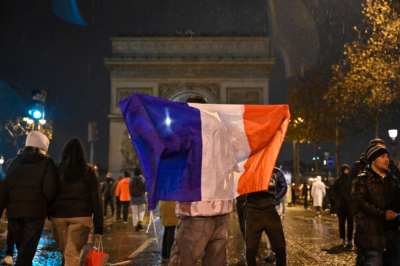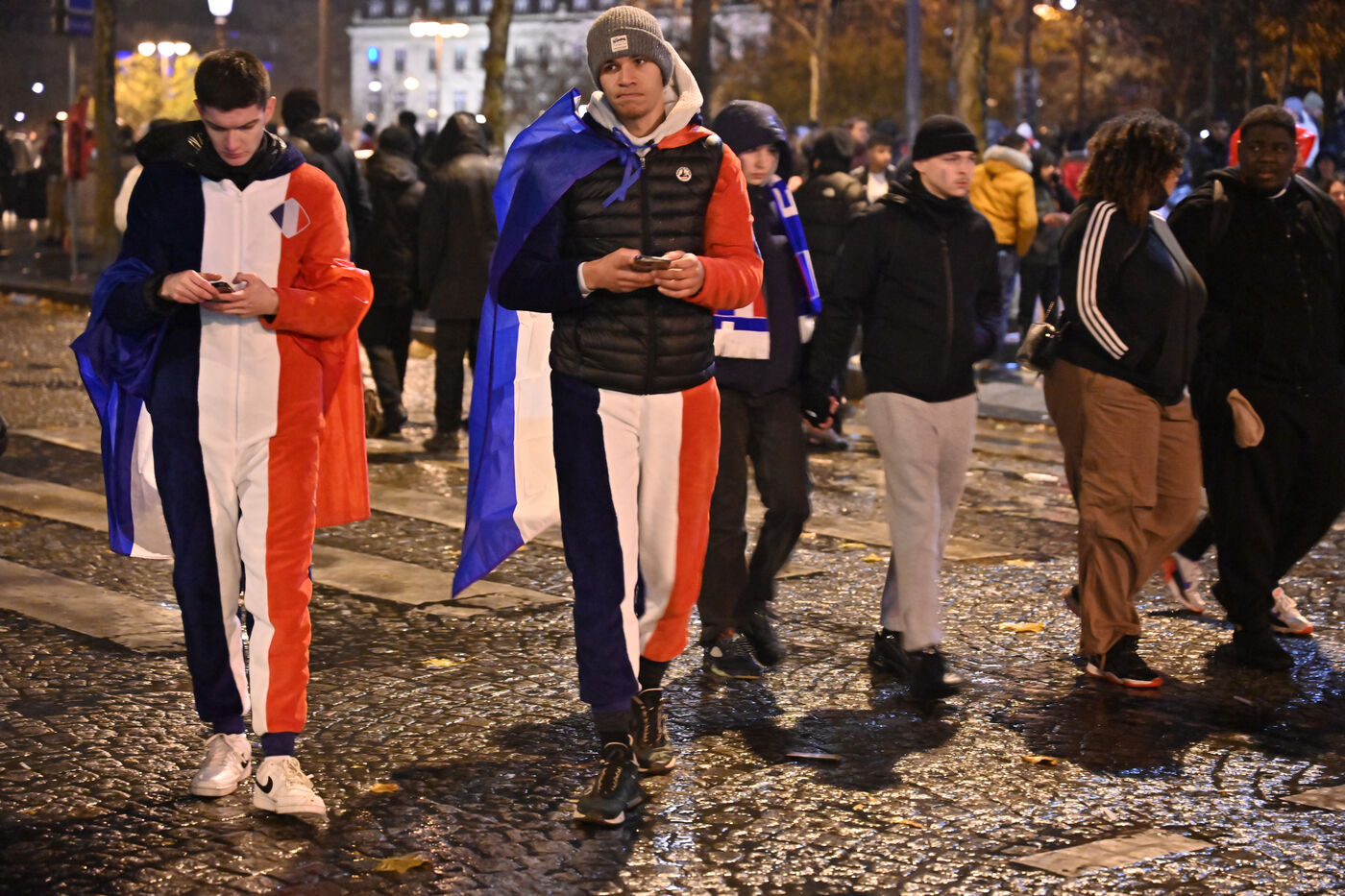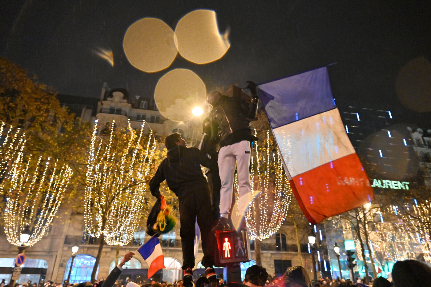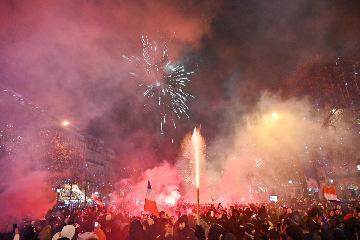 French supporters during the France-Argentina world cup final on the Champs-Elysées.