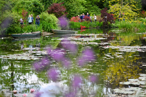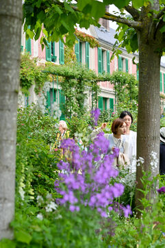 Illustration de la maison de Claude Monet, peintre et jardinier, ainsi que ses jardins composes du Clos Normand et de ses parterres de fleurs et du jardin d eau.