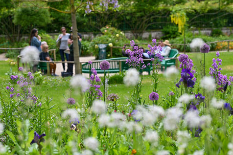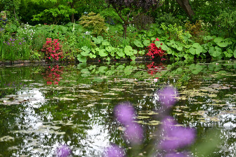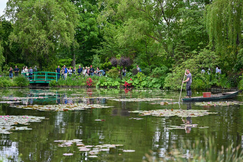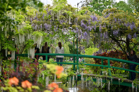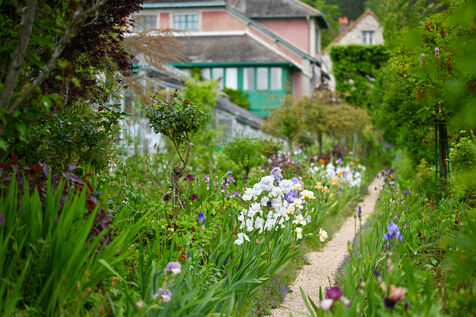 Illustration of the house of Claude Monet, painter and gardener, as well as his gardens consisting of the Clos Normand and its flowerbeds and the water garden.