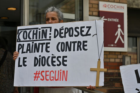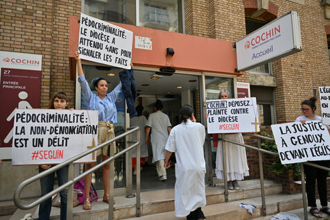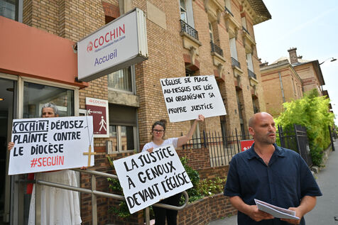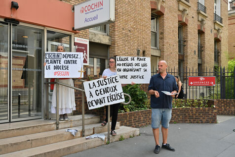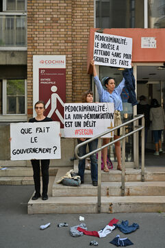 Happening by Be Brave France against Guillaume Seguin. Sexual violence: Catholic chaplain Guillaume Seguin is to be suspended by the AP-HP.