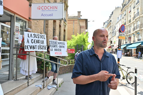 BE BRAVE FRANCE EVENT AGAINST CATHOLIC CHAPLAIN GUILLAUME SEGUIN AT COCHIN HOSPITAL