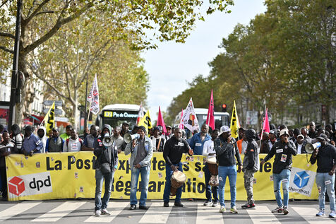 Manifestation de soutien aux postiers et travailleurs grévistes sans-papiers (Chronopost, DPD, RSI). Ils sont en grève depuis fin octobre 2021.