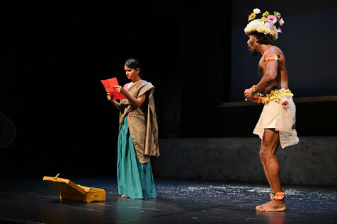 Chandâla, The Impure" by the Indianostrum Theatre of Pondicherry, directed by Koumarane Valavane. The troupe takes up the myth of Romeo and Juliet to denounce the caste system in India. This system prevents young people from different communities from loving each other, knowing that 'chandâla' designates the untouchable, the impure, excluded from everything, on the pretext that they pollute the air, water, and others. These untouchables number two hundred million in India.