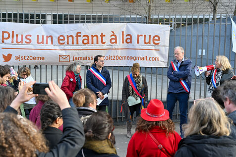 In Paris, as well as throughout France, many schools are dealing with situations where students are sleeping on the streets with their families or living in extreme precarity. Gathering on the occasion of the International Day of Education in front of the Paris Rectorate.