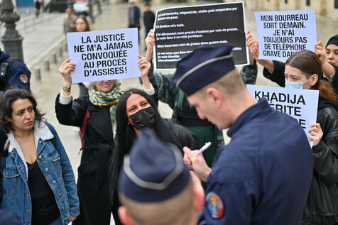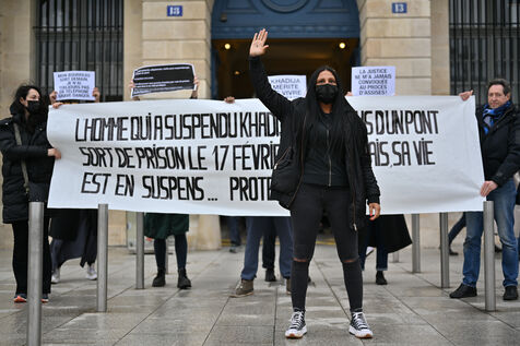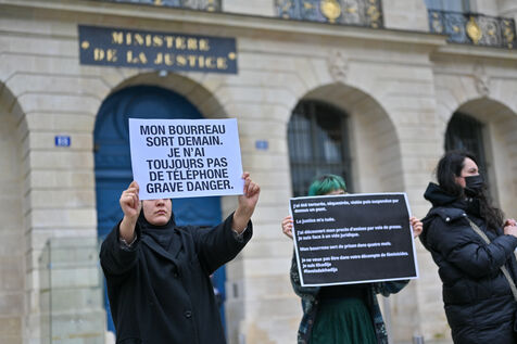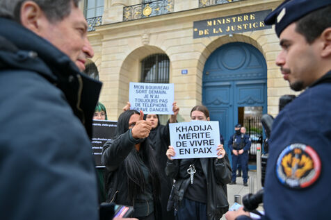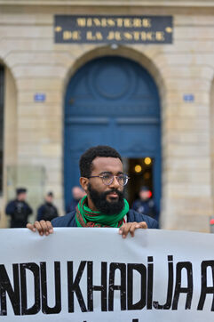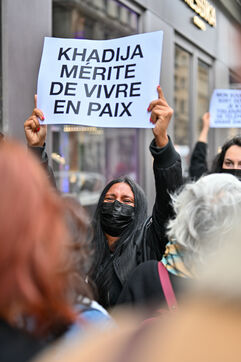 Devant le ministère de la justice, Place Vendôme, Khadija la combattante et des militants ont manifesté pour alerter le gouvernement sur le risque de féminicide encouru par Khadija. Ancienne femme battue, elle s'inquiétait de la sortie de prison ce samedi de son ex-conjoint violent. Ce dernier a finalement été expulsé du sol français, où il n'était pas en situation régulière.