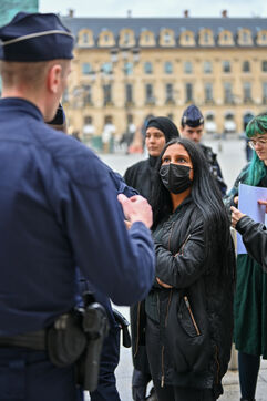 In front of the Ministry of Justice, at Place Vendôme, Khadija the fighter and activists protested to alert the government about the risk of femicide faced by Khadija. Former battered woman, she was worried about her violent ex-partner's release from prison this Saturday. He was ultimately deported from French soil, where he was not in a regular situation.