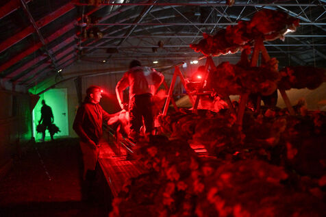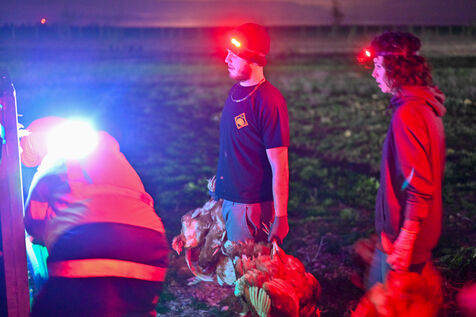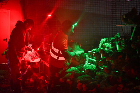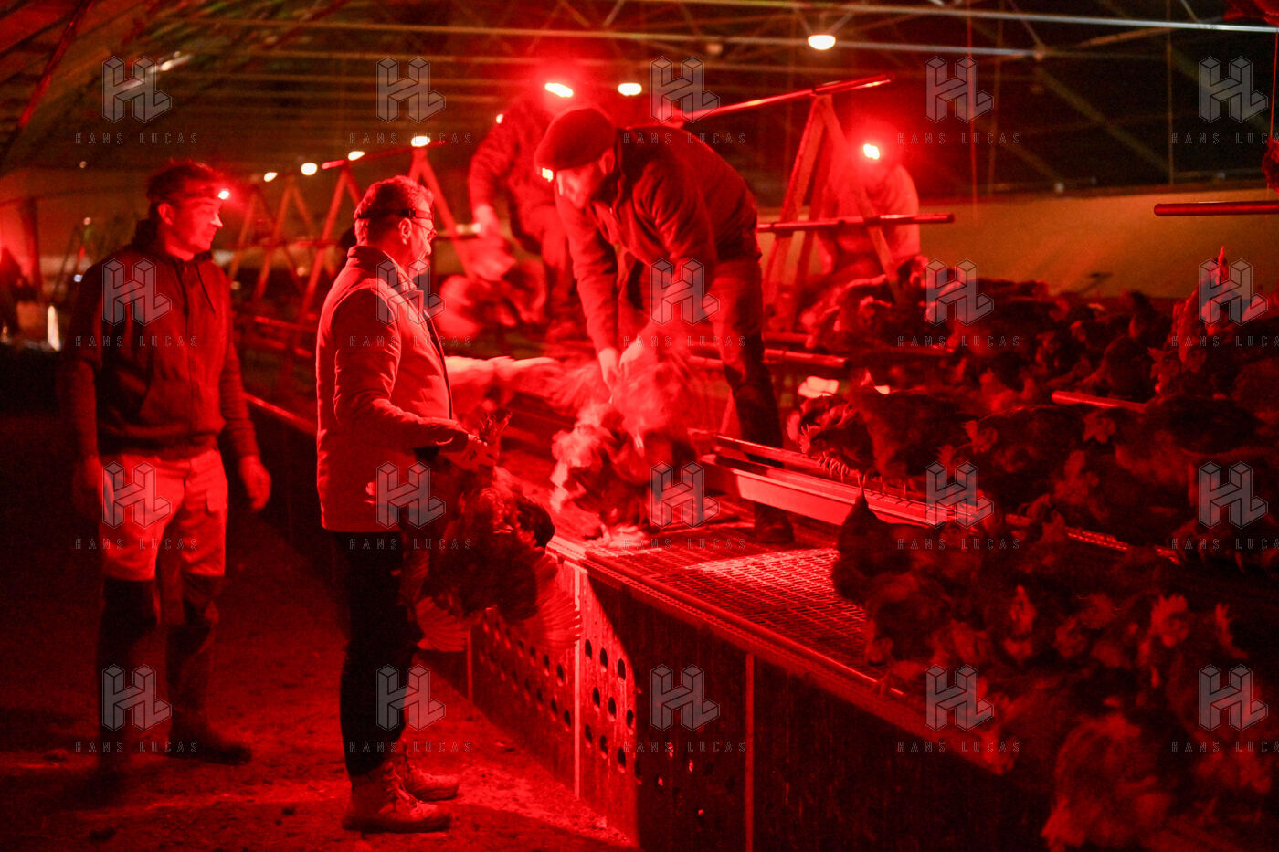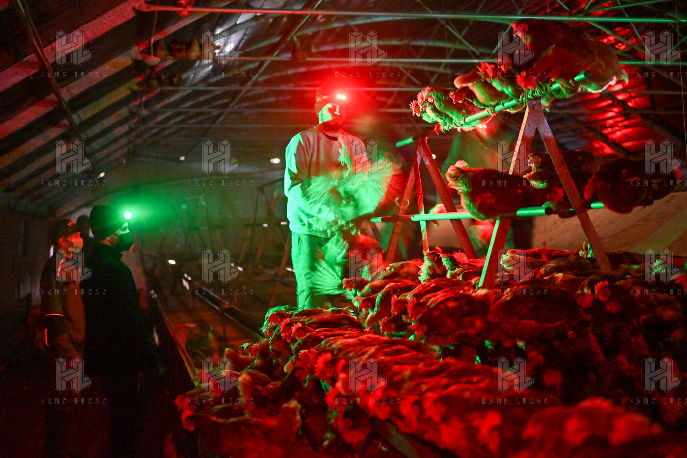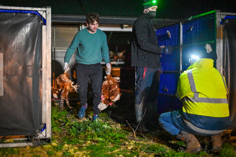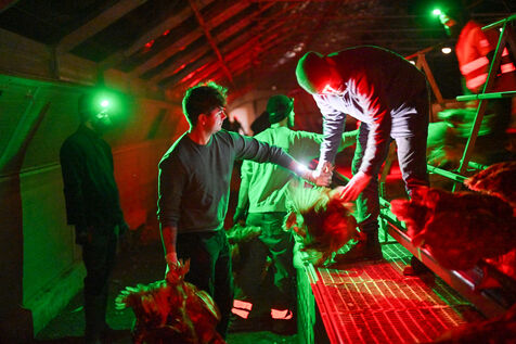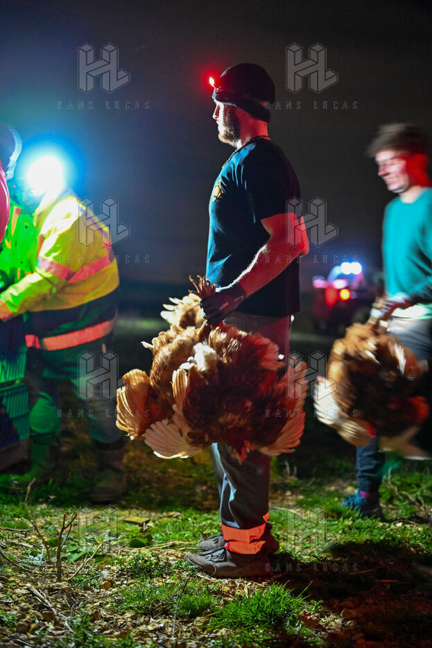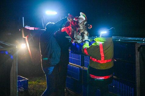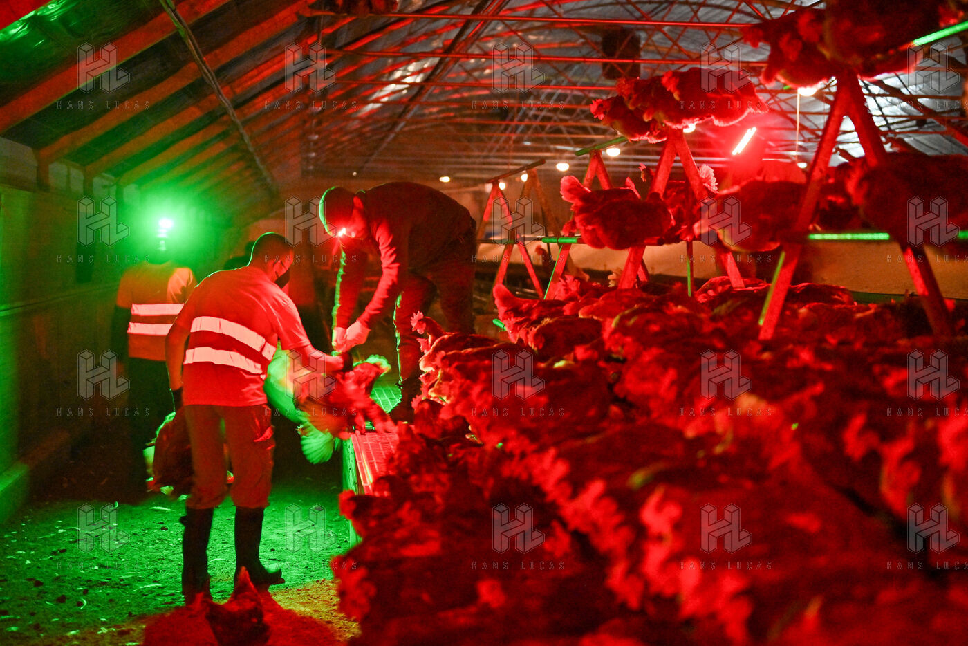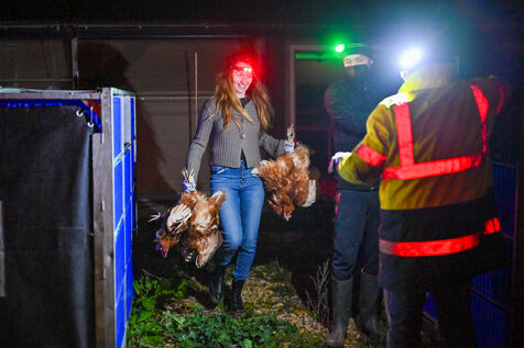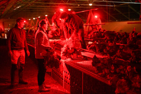 In the heart of the Beauce region, as night falls, this family-owned farm, specializing in the breeding of 9000 laying hens and the production of organic farm products, prepares for a busy evening. Under the red glow of headlamps, poultry gatherers enter the building to begin their collection. The collection team, consisting of 3 seasoned professionals and several friends of the farmer, gets to work. Within two hours, nearly 8000 hens are placed into crates and loaded onto a truck that will head to the slaughterhouse.