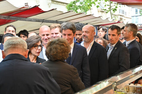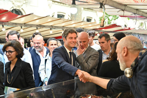 LEGISLATIVE ELECTIONS: GABRIEL ATTAL AND RACHIDA DATI AT A PARISIAN MARKET