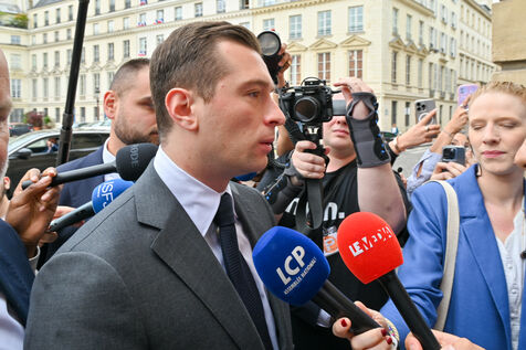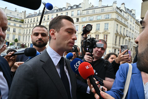 Jordan Bardella, president of the National Rally (RN) party, arrives at the Palais Bourbon of the National Assembly on the occasion of the welcoming days for deputies elected in the second round of the 2024 legislative elections.