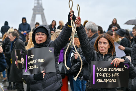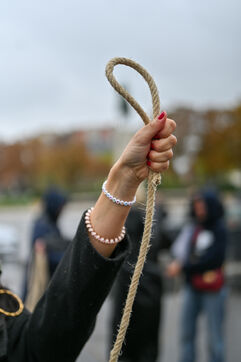 Rassemblement pour condamner les pendaisons en République islamique d'Iran et dénoncer les régimes islamistes qui instaurent un apartheid basé sur le genre et le sexe, tout en perpétrant une violence extrême contre les femmes.