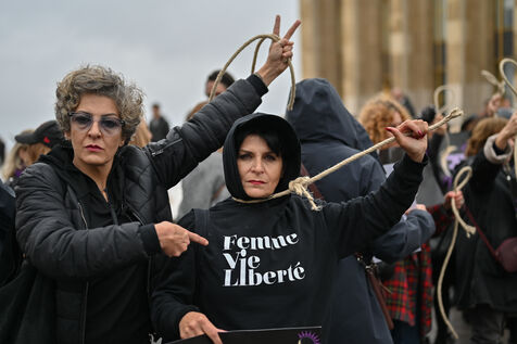 Rally to condemn the hangings in the Islamic Republic of Iran and denounce Islamist regimes that establish apartheid based on gender and sex, while perpetrating extreme violence against women.