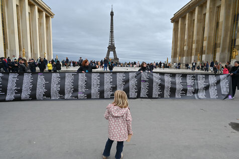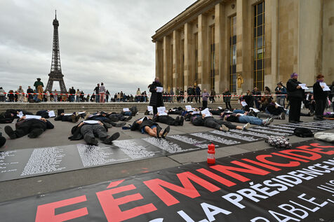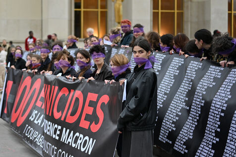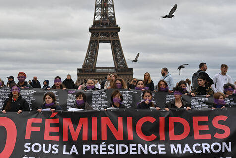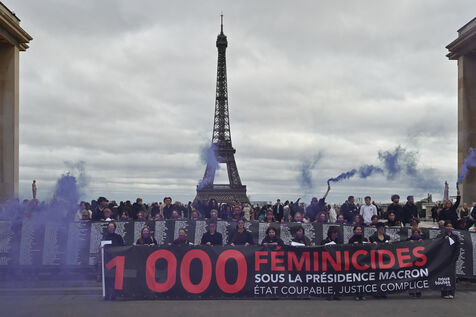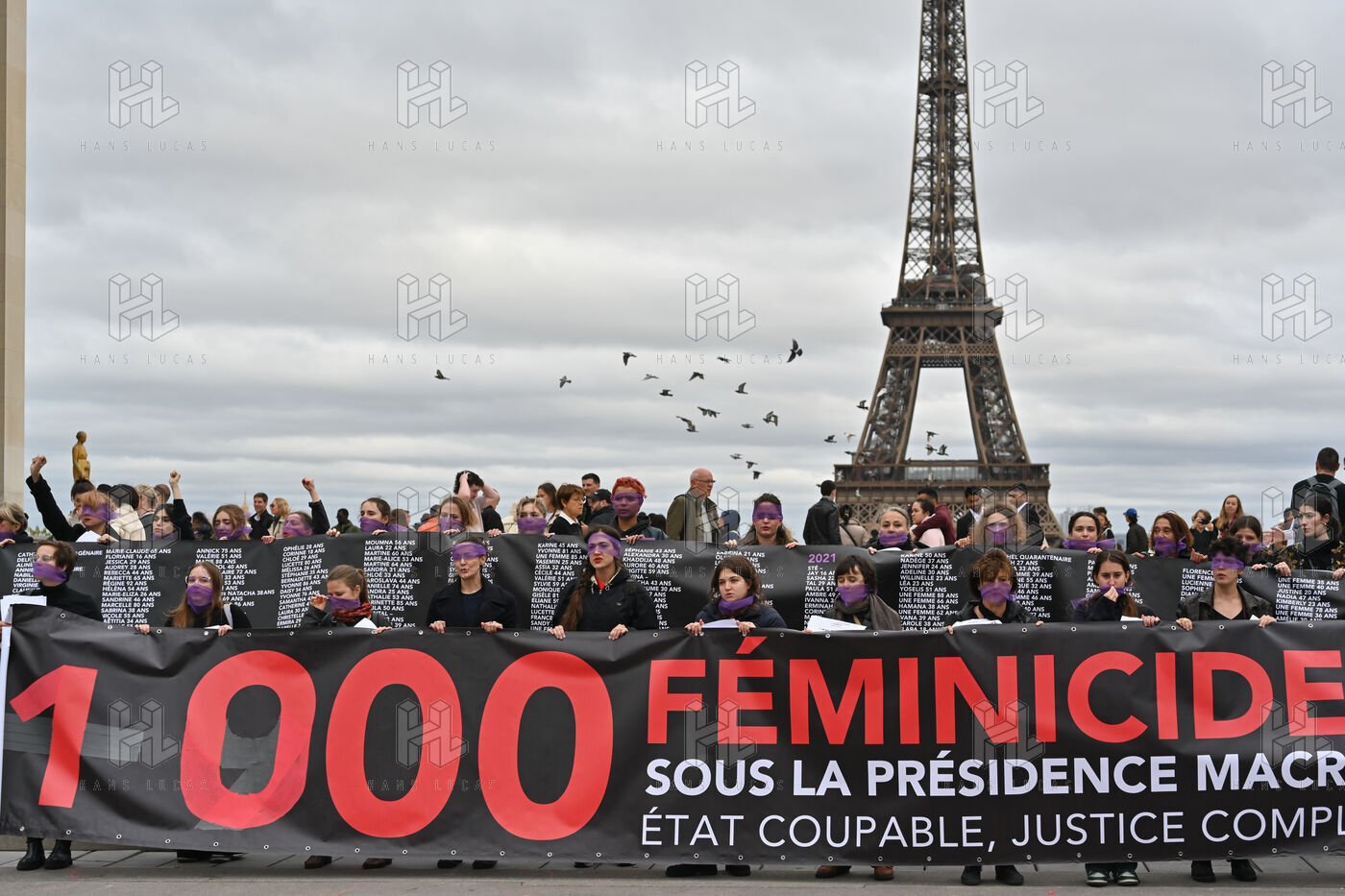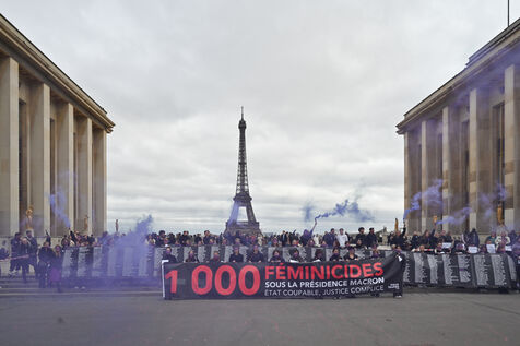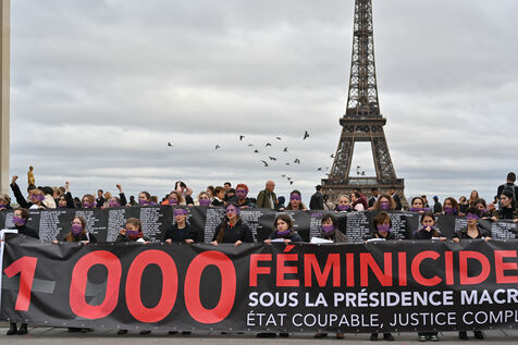 Manifestation à l'appel du mouvement féministe Nous Toutes (#NousToutes) contre les féminicides pour rendre hommage à toutes les femmes assassinées depuis le 1er quinquennat d Emmanuel Macron.
