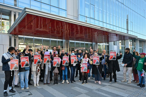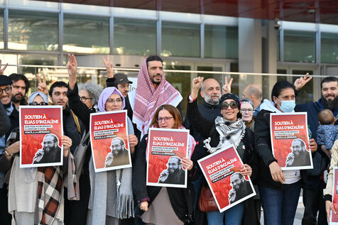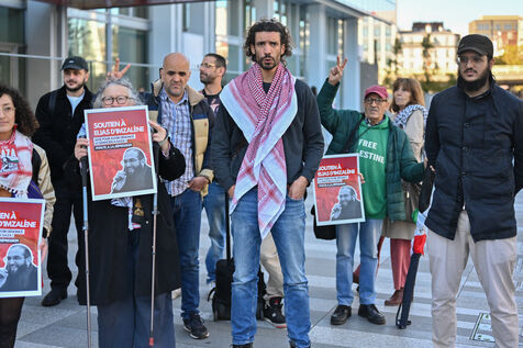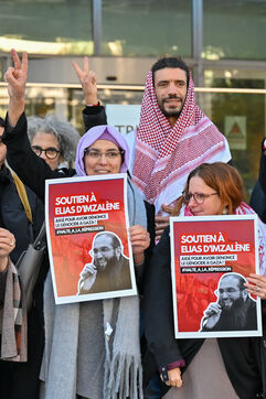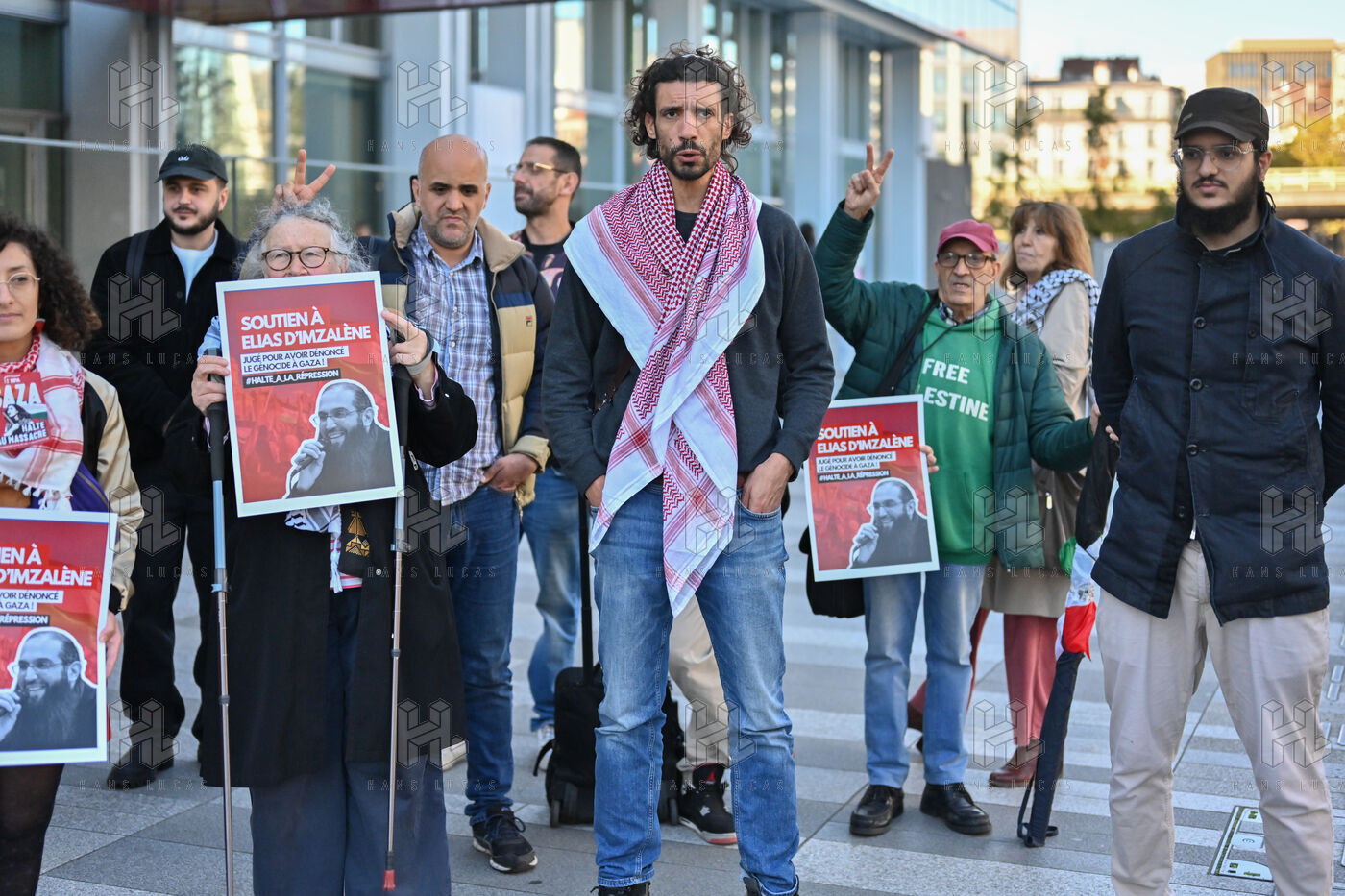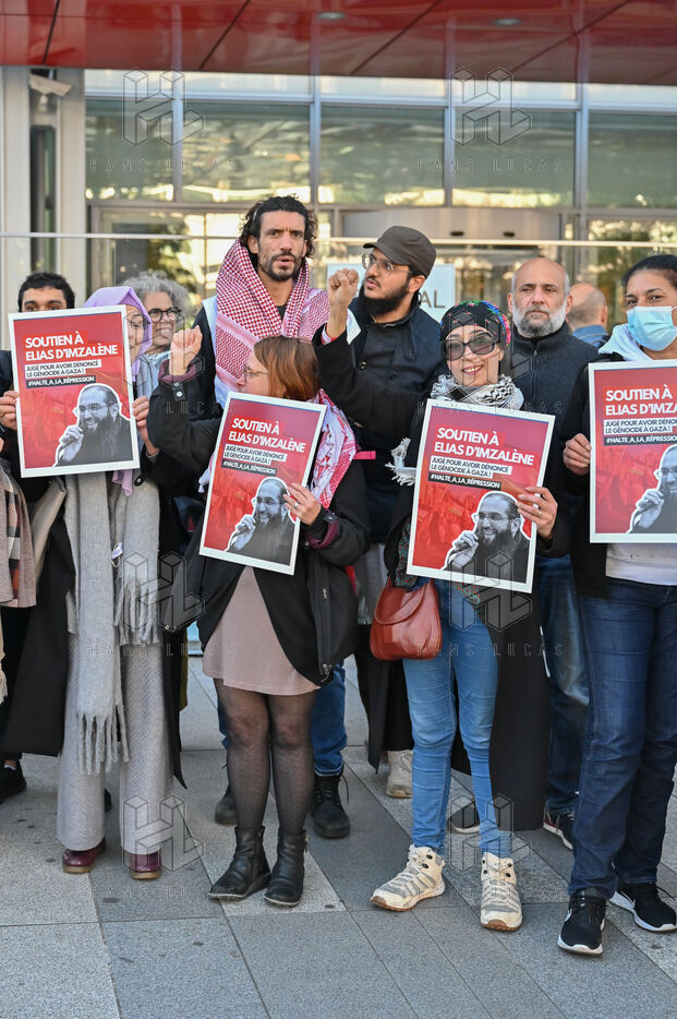 Support rally for pro-Palestinian activist Elias d'Imzalene, who is appearing this Wednesday, October 23, before the correctional court in Paris. He is being prosecuted after calling to lead the intifada in Paris during a demonstration held in the capital in early September.