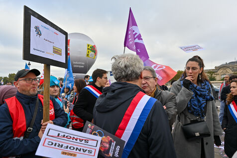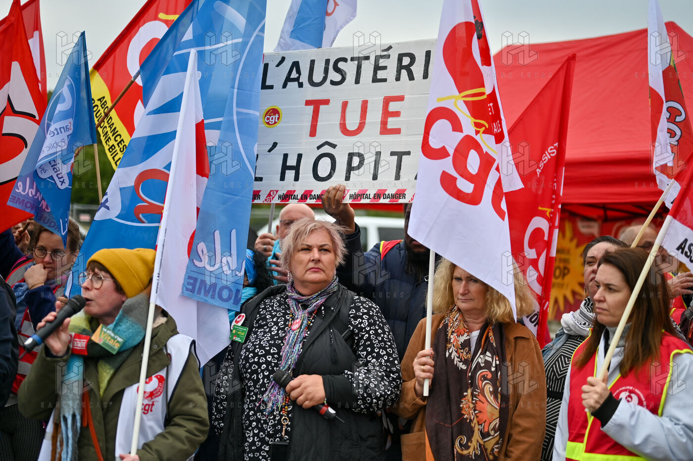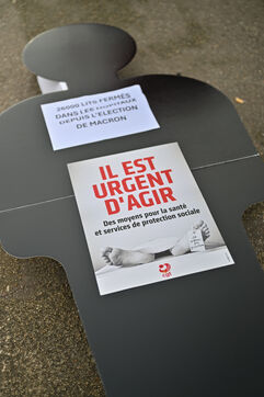 The trade unions CGT, FO, SUD, and UNSA gathered at Les Invalides to defend healthcare, social, and medico-social establishments.