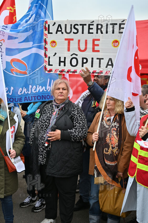 Les organisations syndicales, CGT, FO, SUD et UNSA se sont rassembles aux Invalides pour defendre les etablissements du sanitaire, du social et du medico-social.
