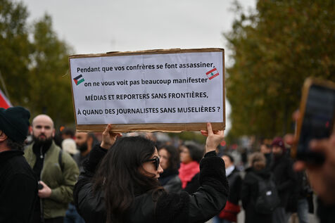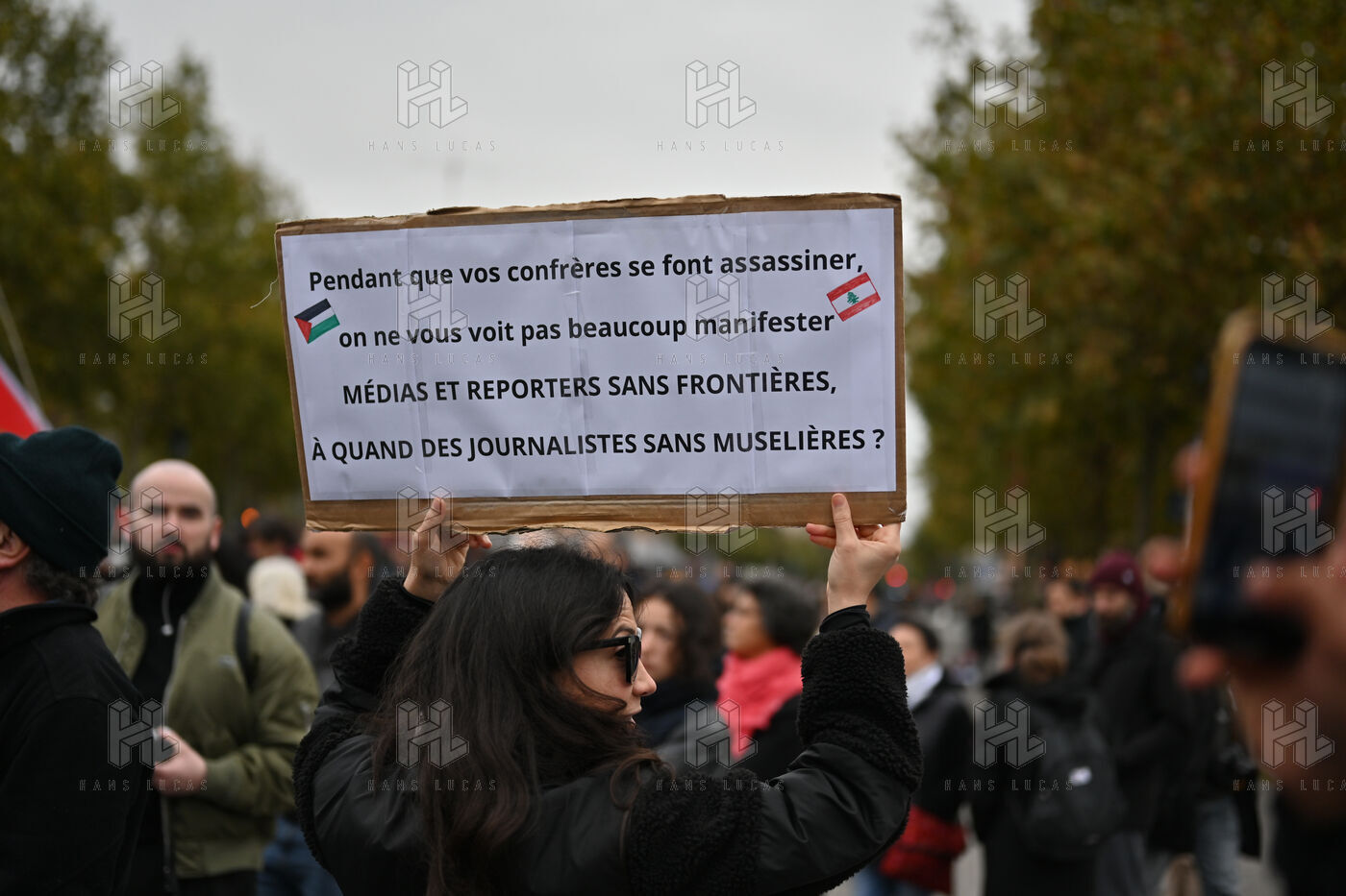 Hundreds of people gathered this afternoon at Place de la République in Paris to protest in support of journalists working in conflict zones, particularly in Palestine and Lebanon.