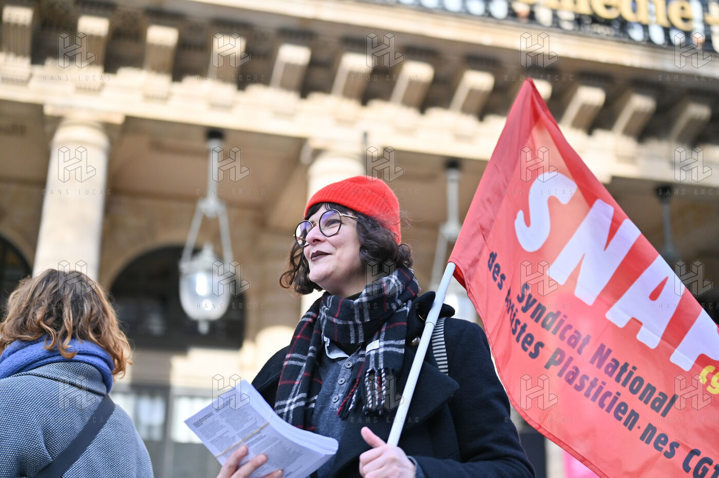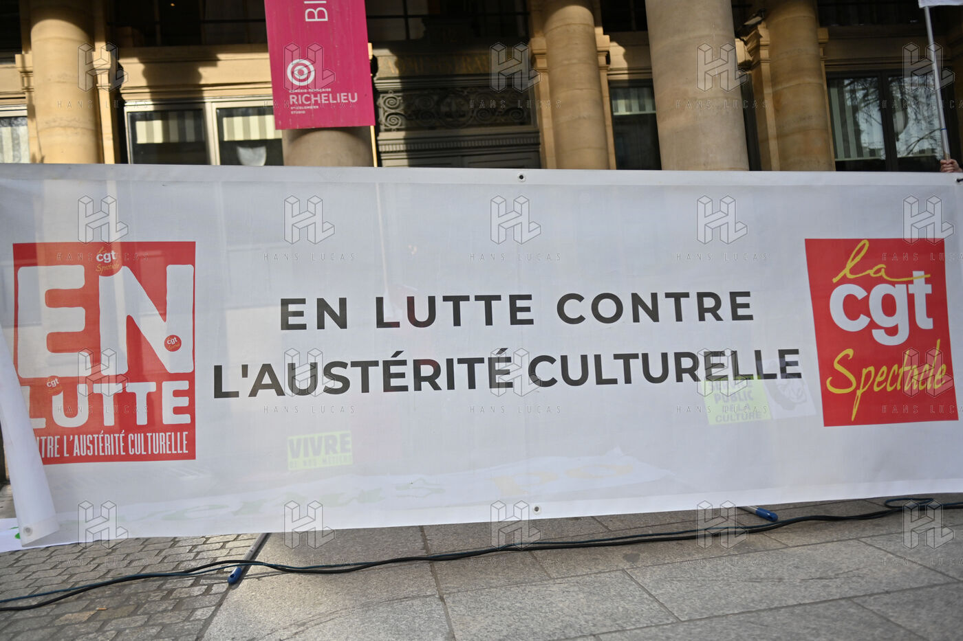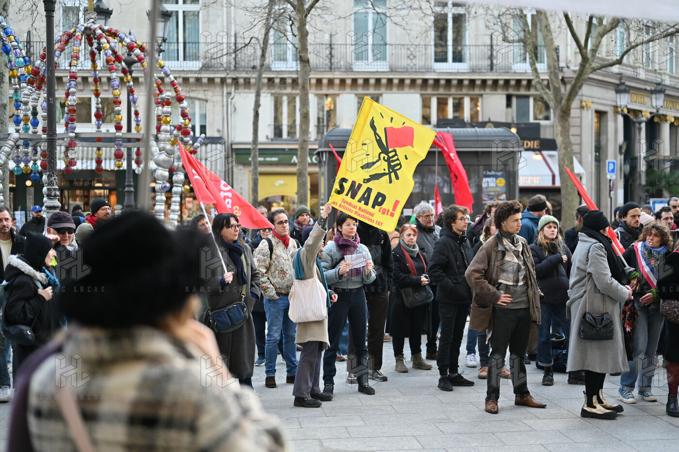 Face aux coupes budgétaires, au désengagement des acteurs publics, a la précarisation des métiers et a l affaiblissement des droits, les travailleur.ses de l art et de la culture se rassemblent place Colette, devant la Comédie Francaise.