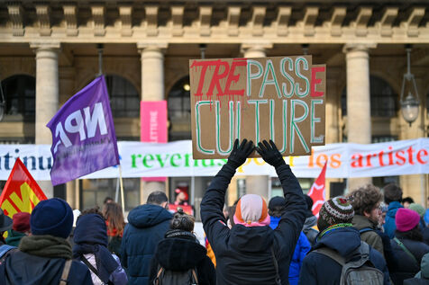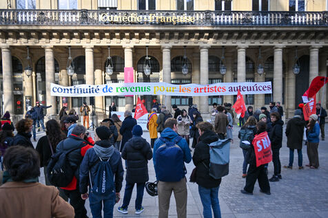 Facing budget cuts, the disengagement of public actors, the precarization of professions, and the weakening of rights, art and culture workers gather at Place Colette, in front of the Comédie-Française.