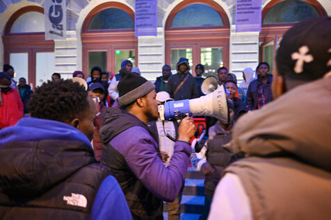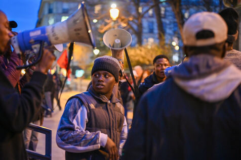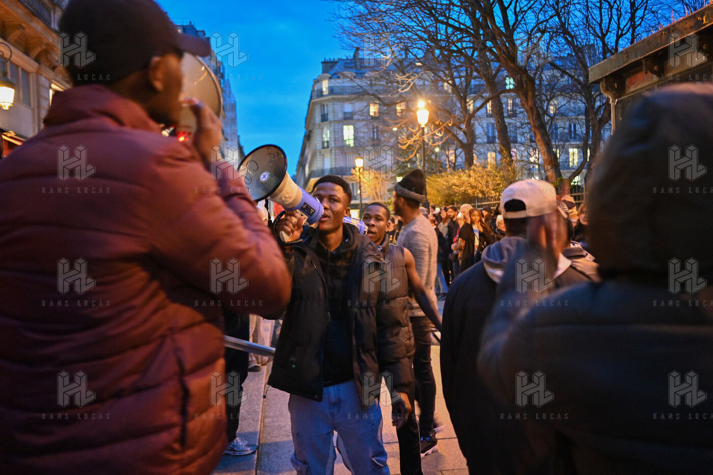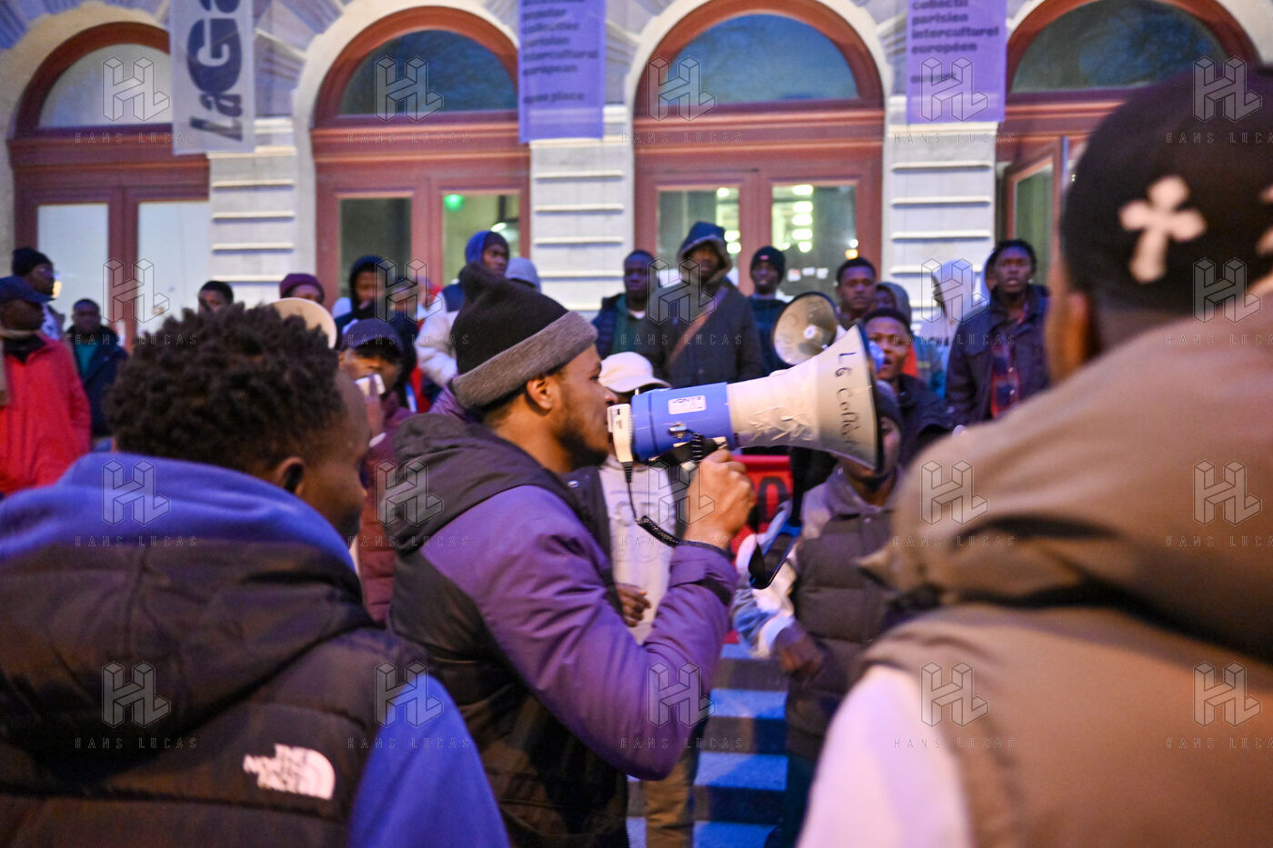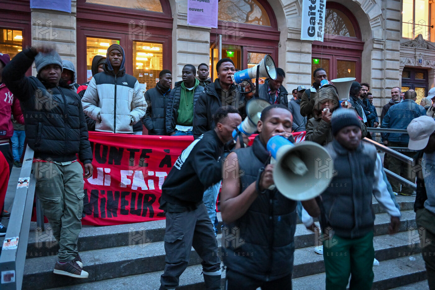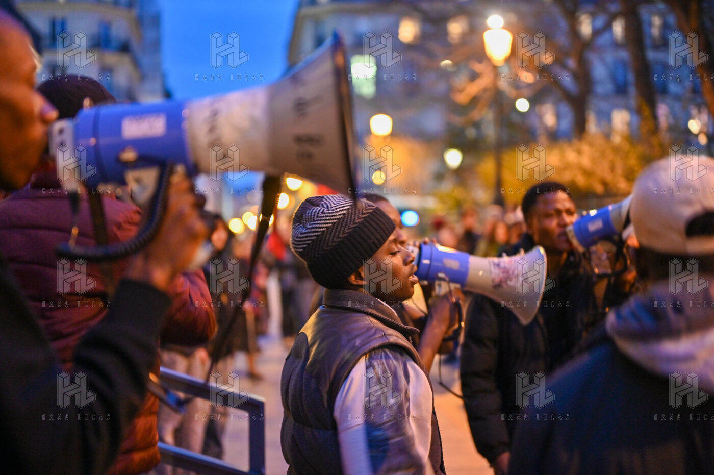 Gathering in support of young migrants after the court decision ordering their evacuation from the Gaite Lyrique. The theater team denounces an "unthinkable" measure that would leave more than 400 people without a solution on the streets.