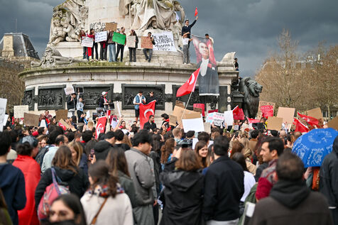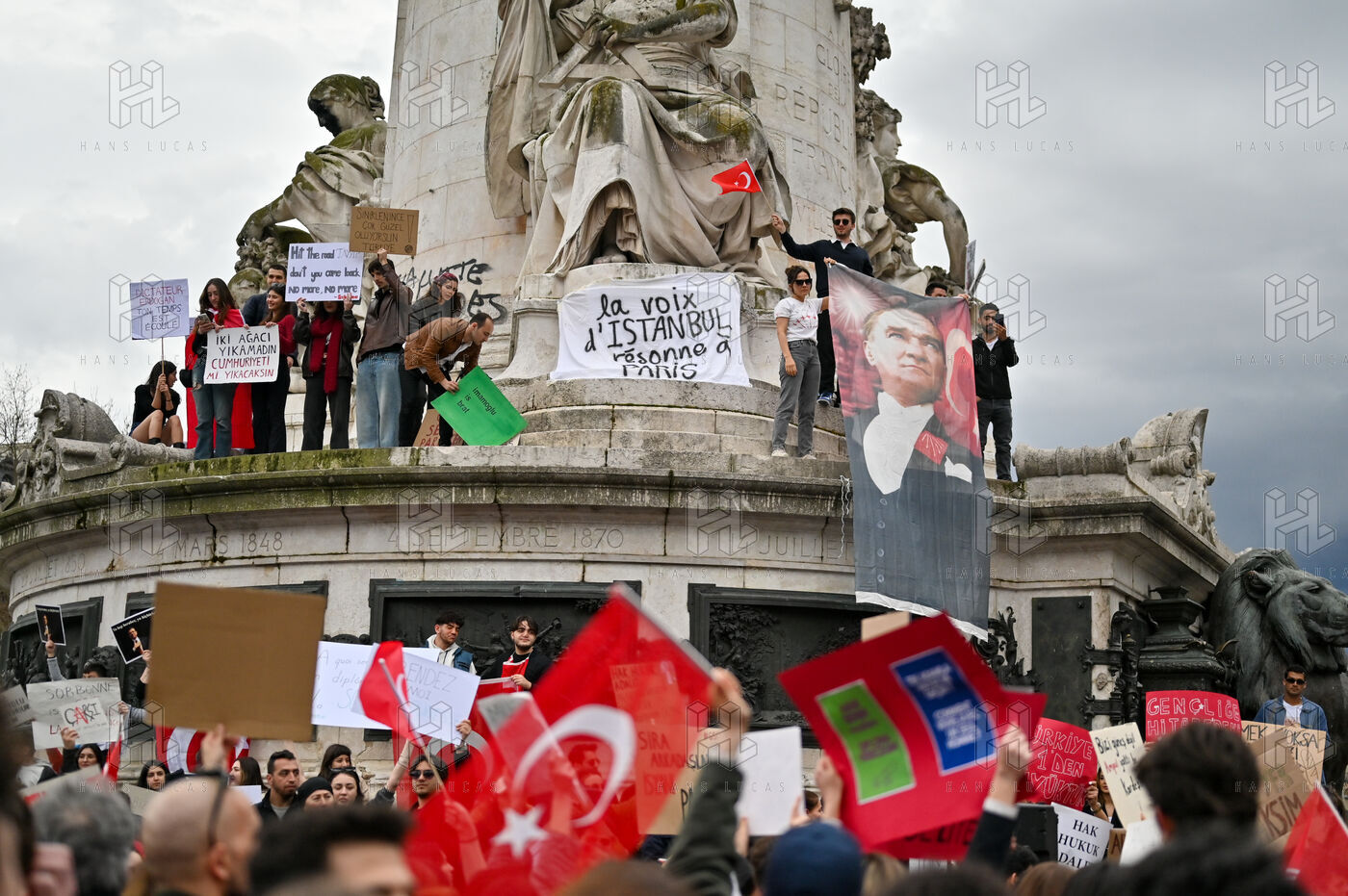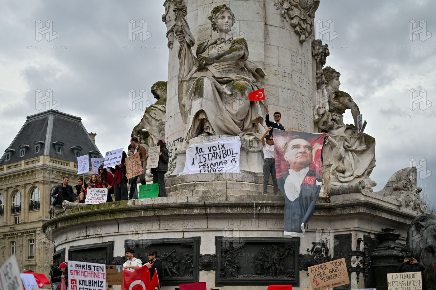 Protesters gathered on Saturday in Paris' Place de la République in support of Istanbul's opposition mayor, Ekrem Imamoglu, accused of corruption and terrorism and arrested as the main opponent of President Recep Tayyip Erdogan.