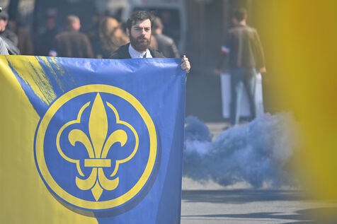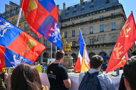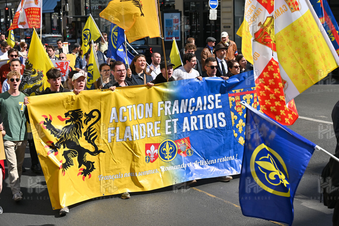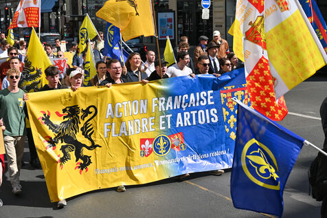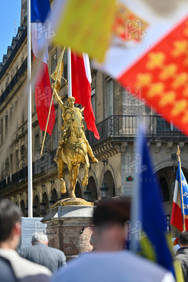 L'Action française a defilé dimanche 14 mai en hommage a Jeanne d'Arc. Le rassemblement est parti de l'Opera en direction de la statue de Jeanne d'Arc place des Pyramides.