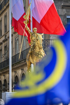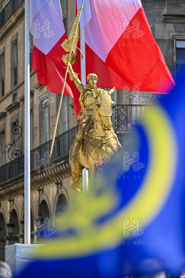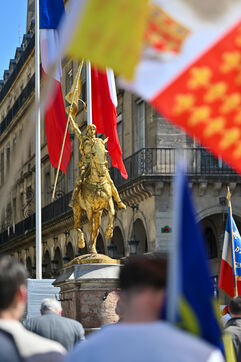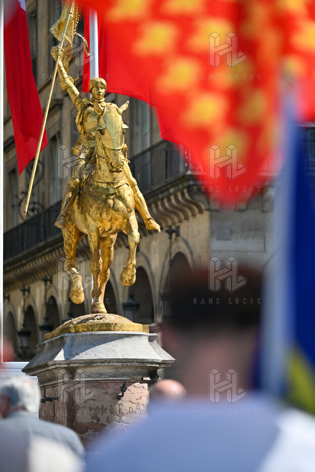 The Action francaise marched on Sunday May 14 in tribute to Jeanne d Arc. The gathering moved from the Opera toward the statue of Jeanne d Arc at Place des Pyramides.