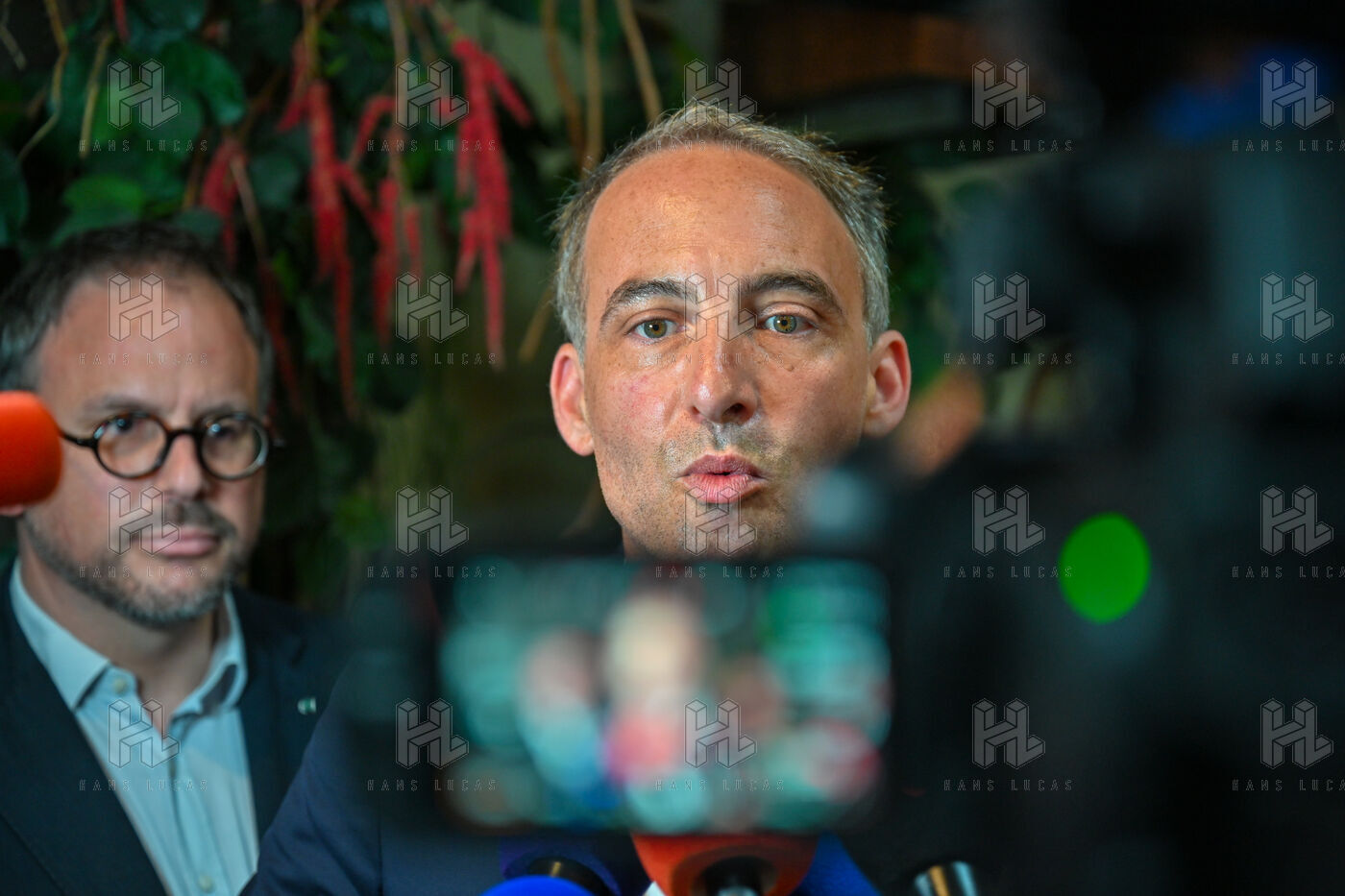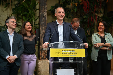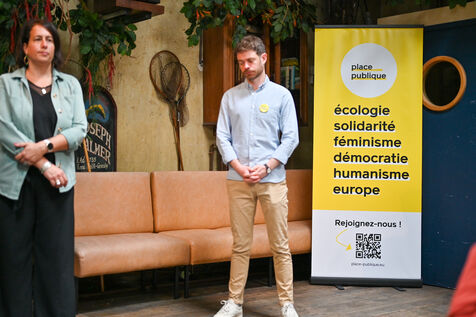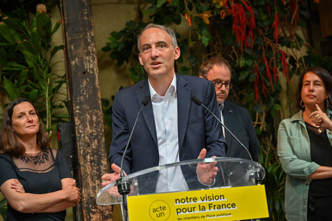 Raphael Glucksmann présente le programme de son parti Place publique lors d'une conférence de presse organisée au Comptoir general.