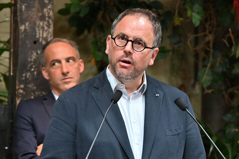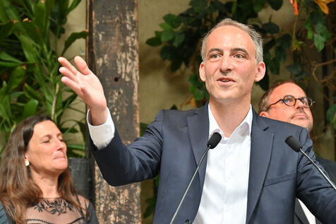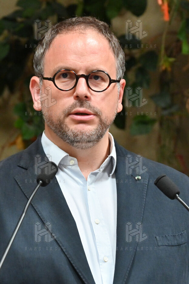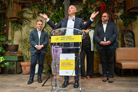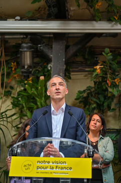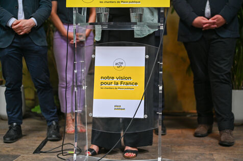 Raphael Glucksmann presents the program of his party Place publique during a press conference held at the Comptoir general.