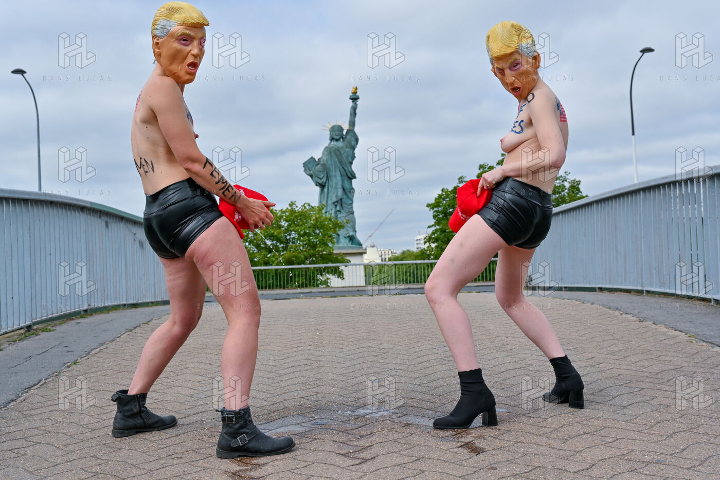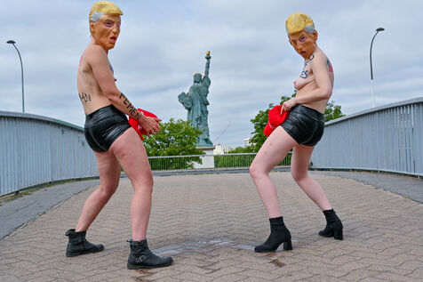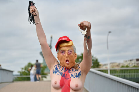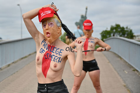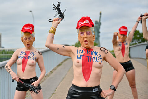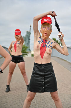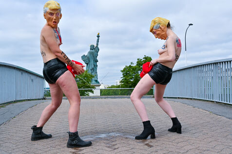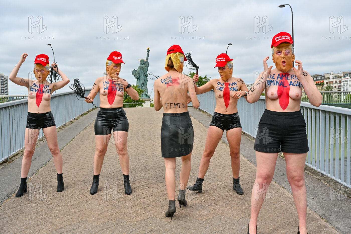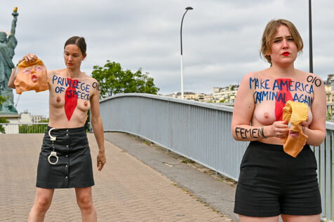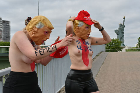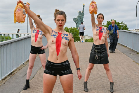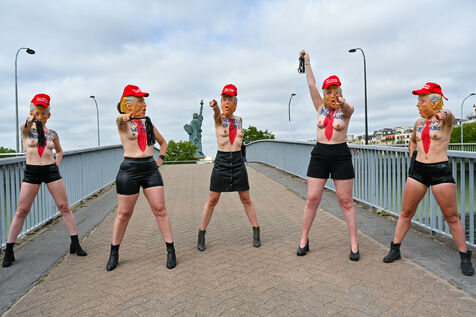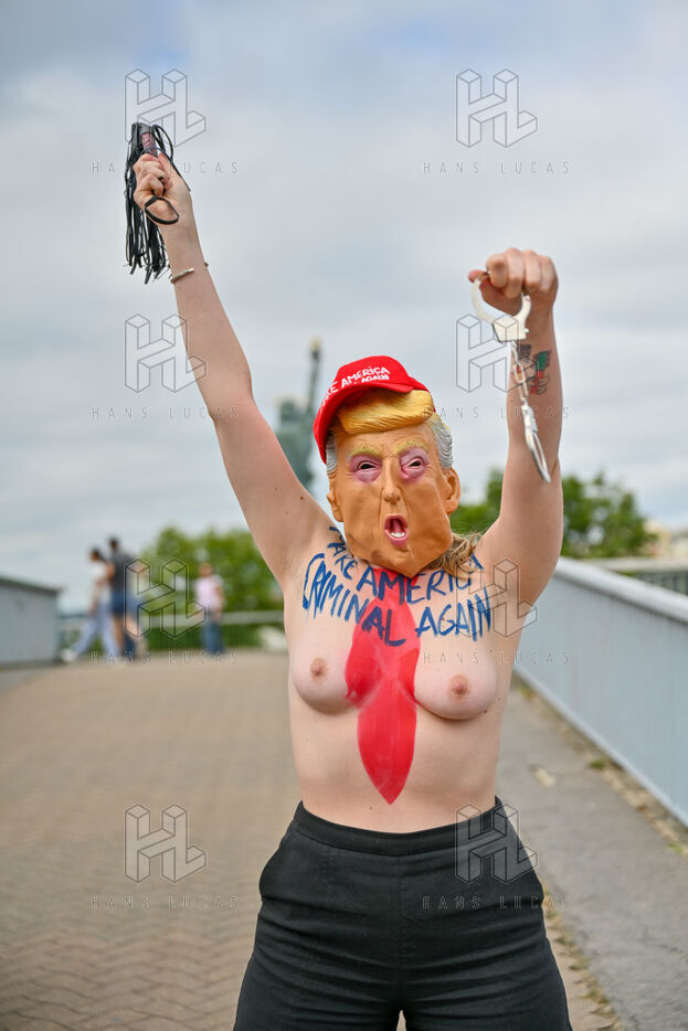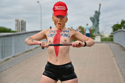 Five activists from the FEMEN movement staged a militant action in Paris on July 4, 2025, the American Independence Day. Dressed as Donald Trump, they performed a symbolic protest against the U.S. president's authoritarian policies. Armed with whips, they targeted the Statue of Liberty, a Franco-American symbol. Their message: “Make America Criminal Again!”