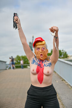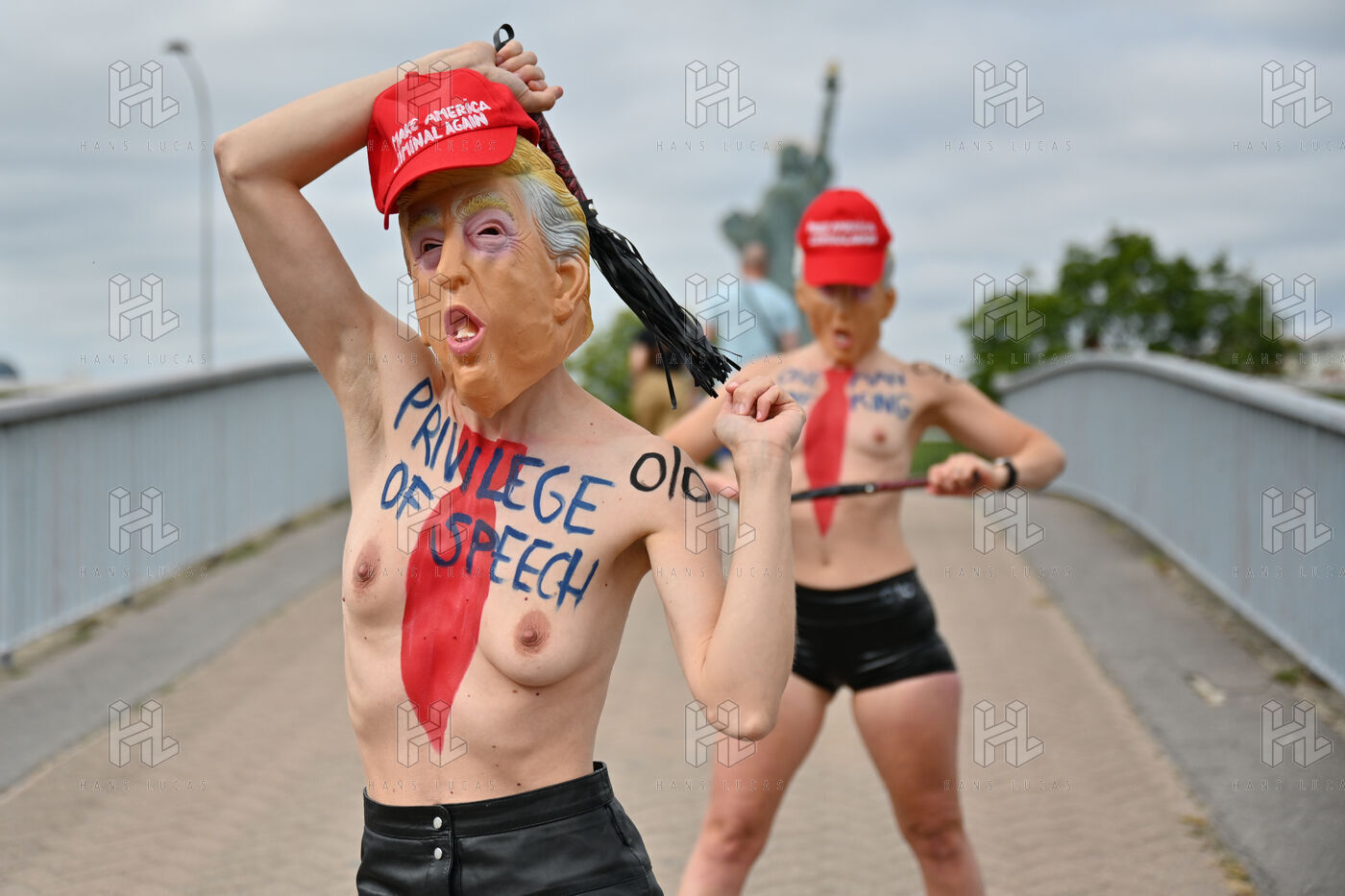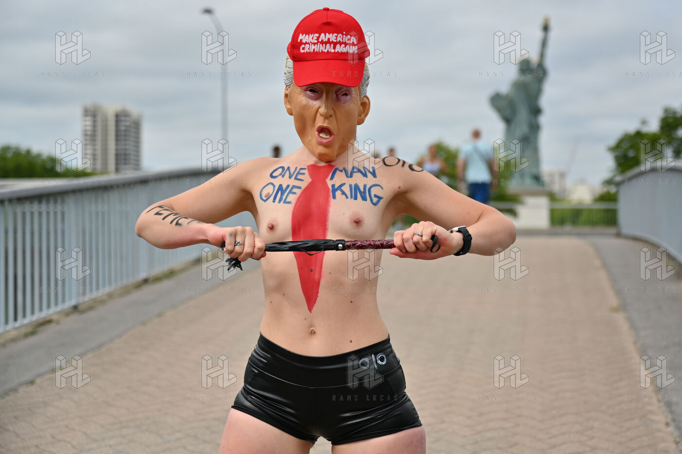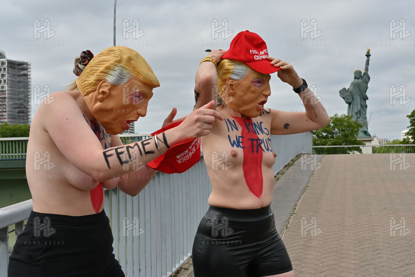 Five activists from the FEMEN movement staged a militant action in Paris on July 4, 2025, the American Independence Day. Dressed as Donald Trump, they performed a symbolic protest against the U.S. president's authoritarian policies. Armed with whips, they targeted the Statue of Liberty, a Franco-American symbol. Their message: “Make America Criminal Again!”