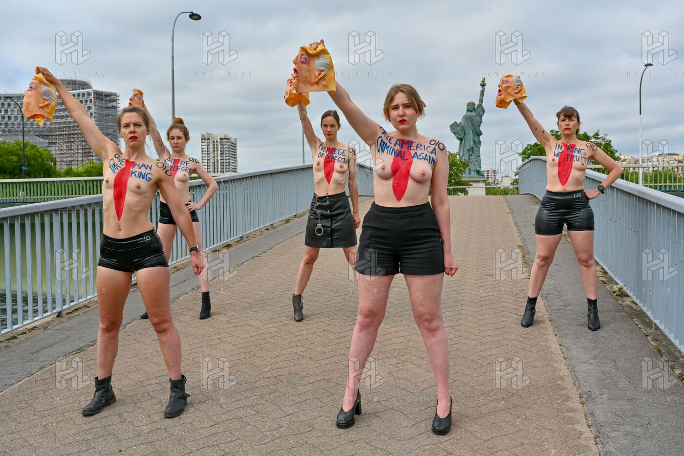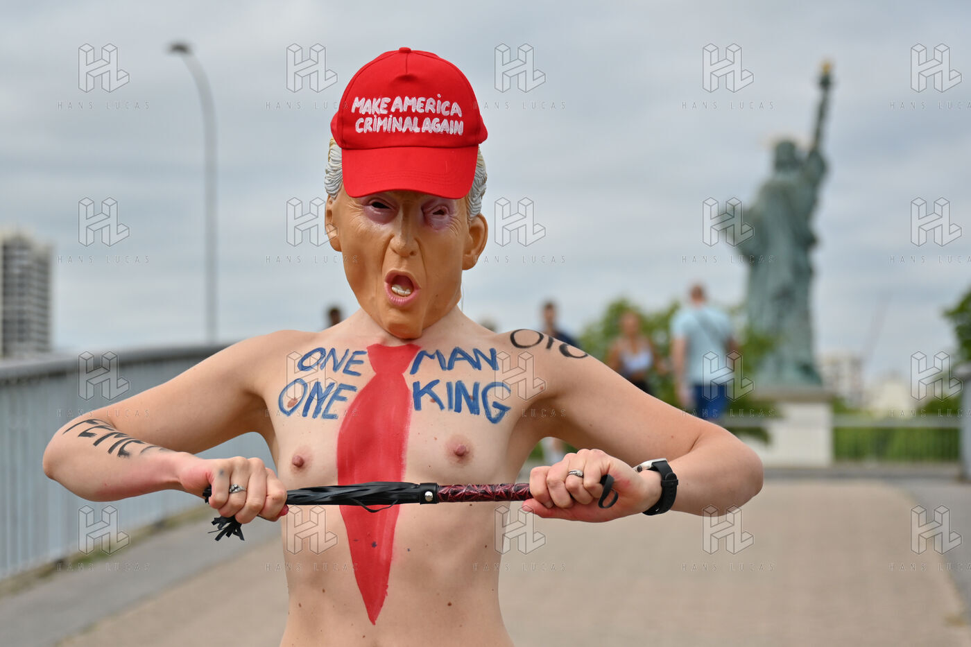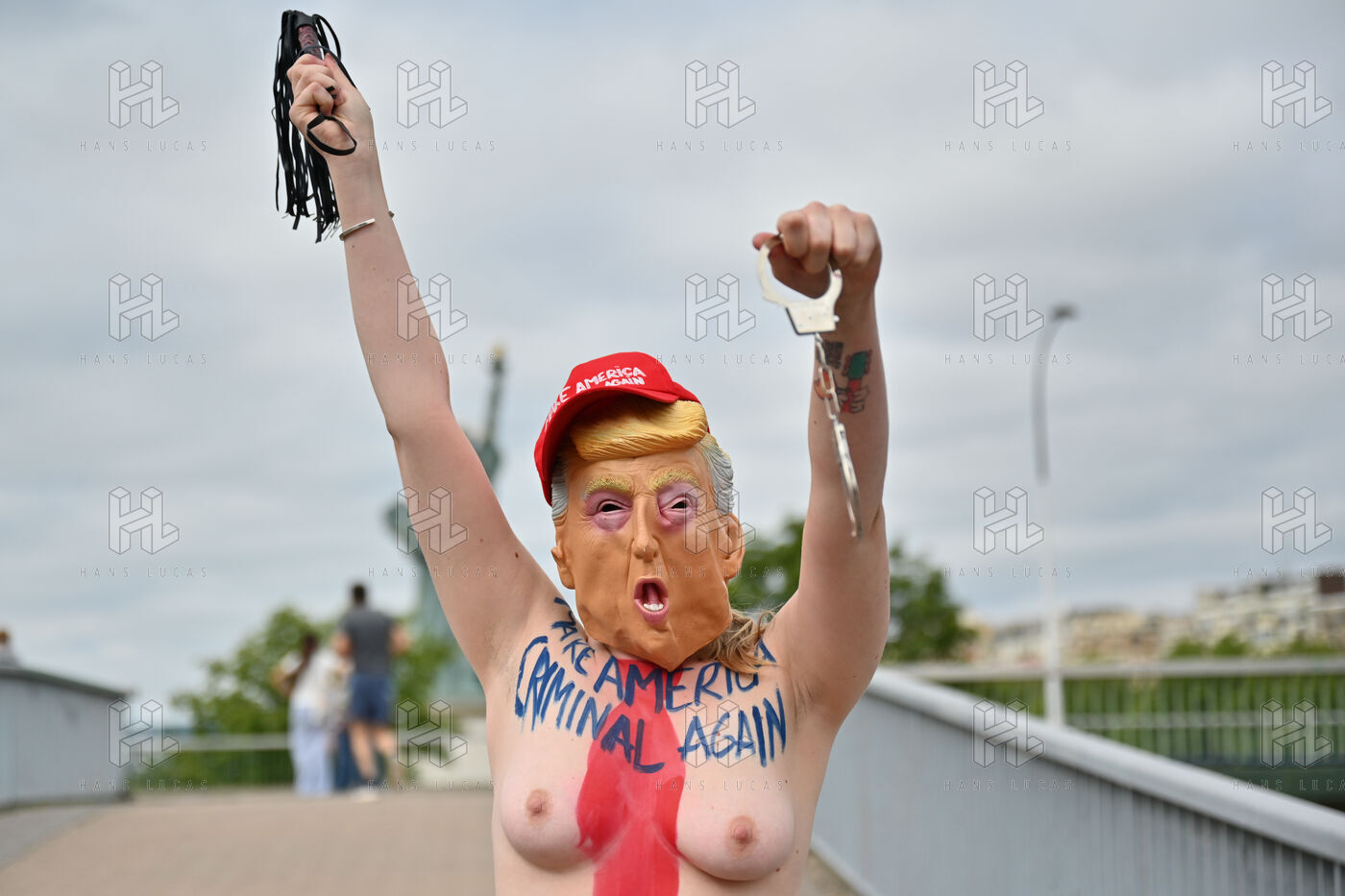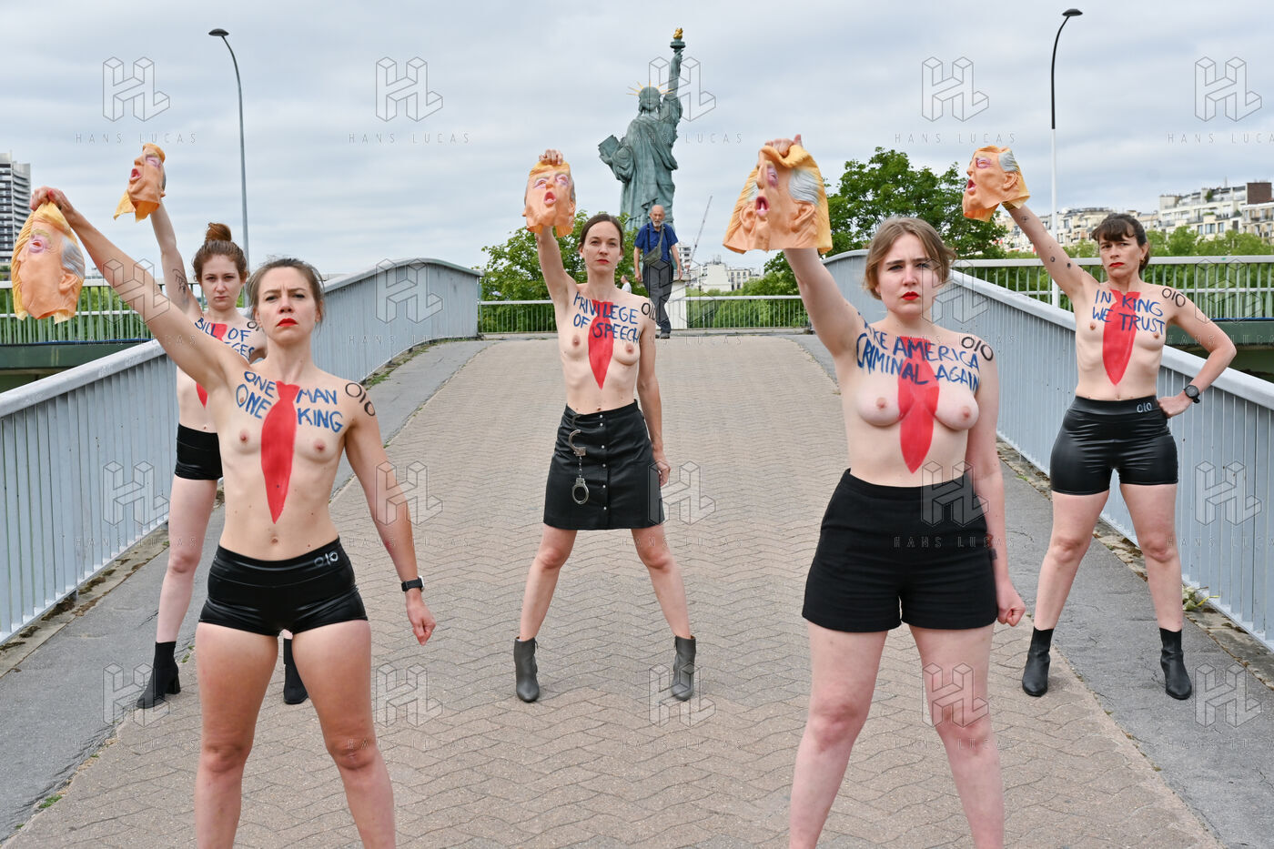 Five activists from the FEMEN movement staged a militant action in Paris on July 4, 2025, the American Independence Day. Dressed as Donald Trump, they performed a symbolic protest against the U.S. president's authoritarian policies. Armed with whips, they targeted the Statue of Liberty, a Franco-American symbol. Their message: “Make America Criminal Again!”