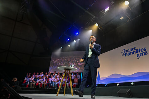 Deuxième journée du Rendez-vous de la droite de l université d été des LR, Les Républicains, avec le meeting de Bruno Retailleau, ministre de l Intérieur.