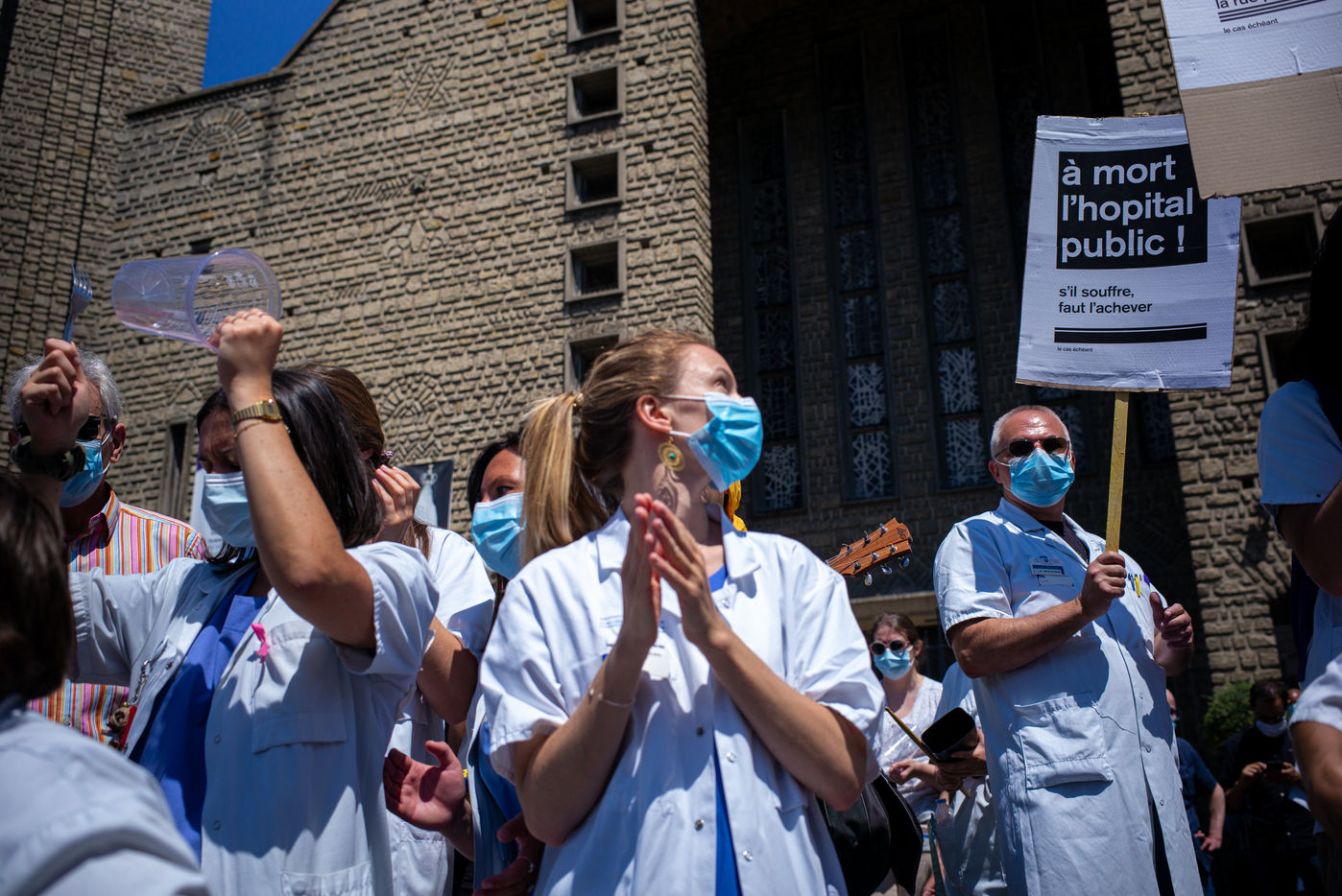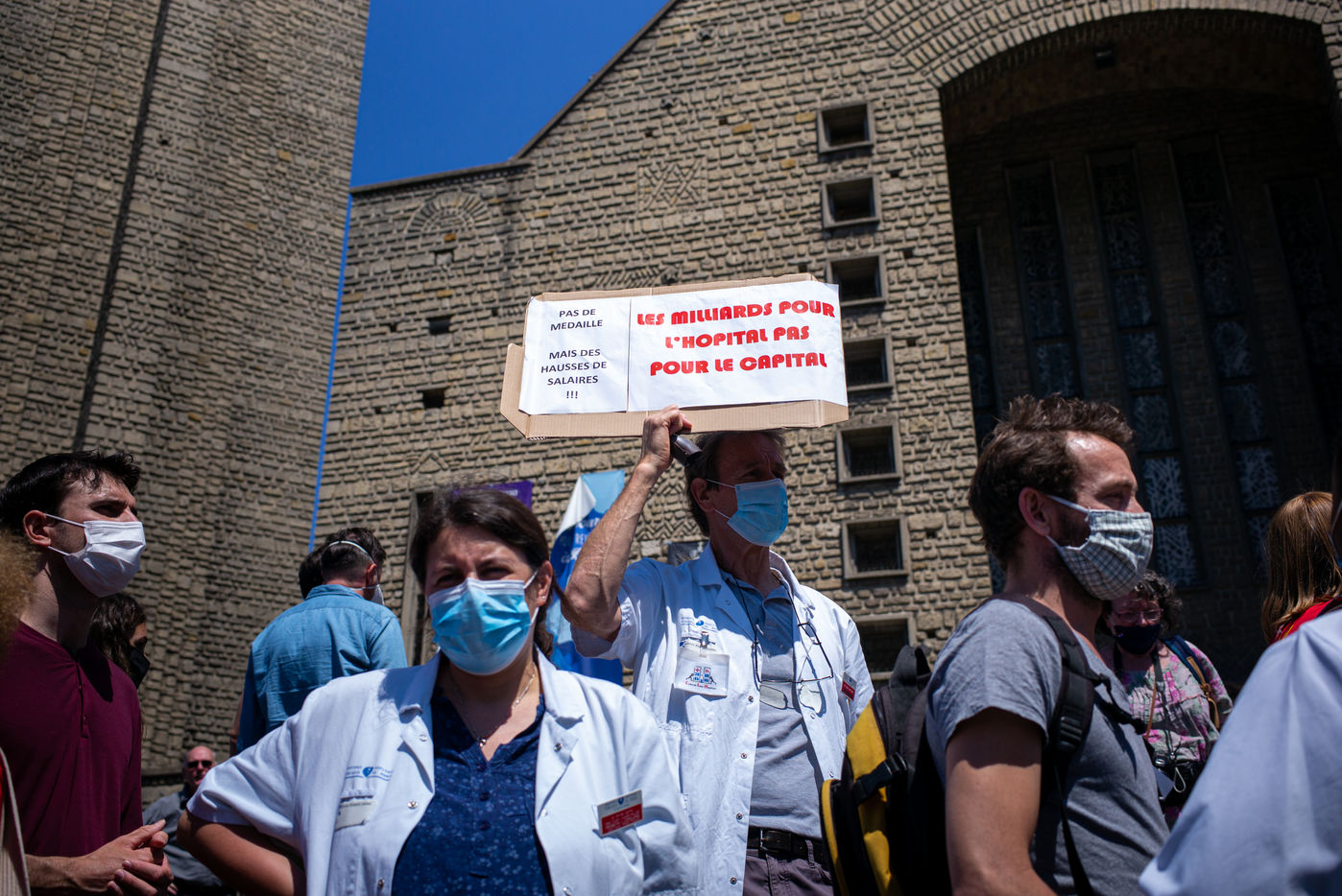 After 2 months of a health crisis at covid19 , the nursing staff of the Robert Debre Hospital gathered to demonstrate for a fairer health system and less in line with market logic, the latter being the cause of a serious lack of human and material resources. ?