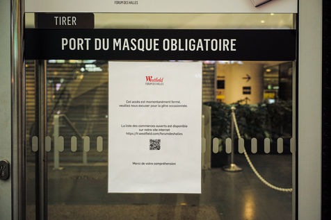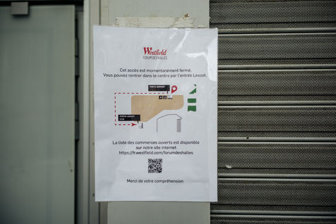 As a new phase in the fight against the Covid-19 epidemic, the government has taken the decision to force the closure of non-food shopping malls of more than 20,000 square meters. The Westfield Forum des Halles shopping complex has closed its stores, some accesses are even forbidden.©