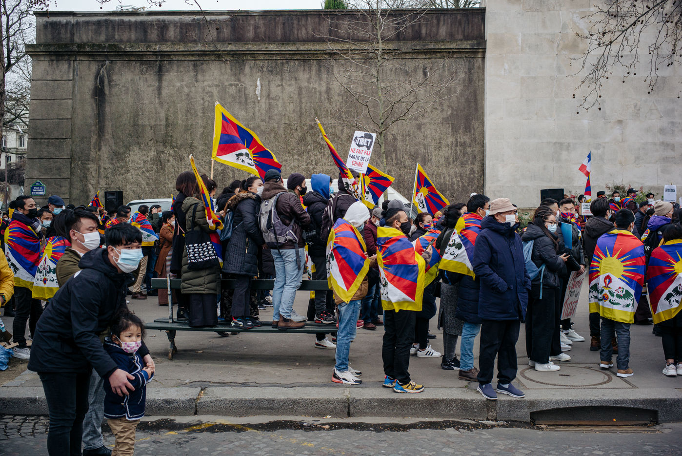 Tibetans gathered in Paris at the Place du Trocadero to commemorate the 62nd anniversary of the Tibetan People's Uprising against the Chinese occupation in 1959. This demonstration protested against injustice, human rights violations, the occupation of Tibet and the destruction of a people.
