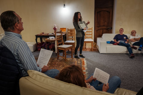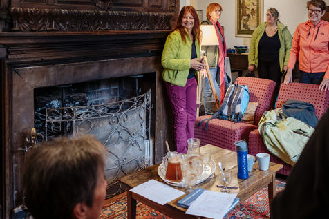 At the end of the day, Johanna leads thematic conferences. They give some keys to understand what is happening in their bodies during the fasting process. The fasters are then invited to have the daily clear broth. How do the fasters feel after two or three days without eating? Most of them have a smile on their face every morning. Few people feel uncomfortable with the lack of food. Out of 16 trainees, only two have difficulties on the third day of the fast, which is considered to be the most difficult. On the evening of the fifth day of the fast, the participants meet in the dining room where they usually take their broth. This time large baskets of fruits are placed on the table. Each trainee can take the fruit that he or she had previously indicated on a "breaking the fast" sheet. The moment is solemn. Some trainees do not have an appetite and do not finish their fruit. Others take one more. A frugal banquet brings the fasting and hiking retreat to an end. In the taxi that takes the participants back to the train station, we can feel the tiredness coming from a busy and unusual week. The landscapes pass by, sometimes we can see a ploughed ochre earth, other times fields of lavender waiting to bloom again next spring.