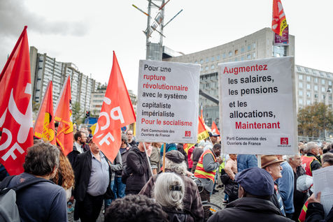 2022, 18 October, Paris (75), FRANCE. National interprofessional demonstration (energy, health, transport, public service, education) called by the CGT for wages and against requisitions.