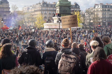 2023, 13 April, Paris (75), FRANCE. Day of mobilisation, strikes and demonstrations to contest the pension reform passed by force with the use of 49.3 by the Prime Minister Elisabeth Borne.