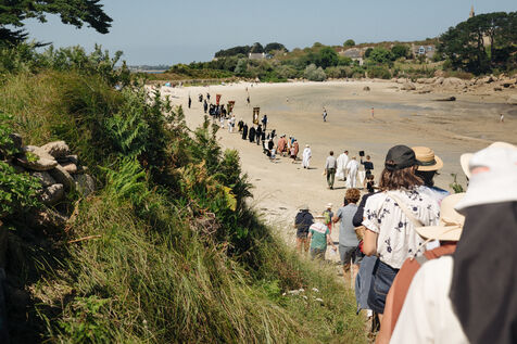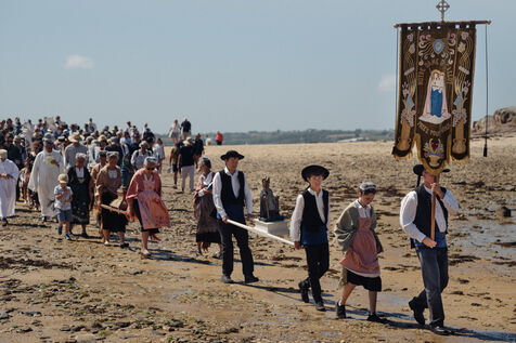 Sunday, August 10, 2025, Pardon of Callot Island. The Pardon of Our Lady of Callot Island is an annual Catholic pilgrimage. It brings together hundreds of faithful, often dressed in Breton costumes, in a procession from the port of Carantec to the small chapel standing at the highest point of the island . 2025 08 10, CARANTEC, France.