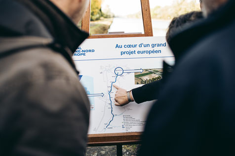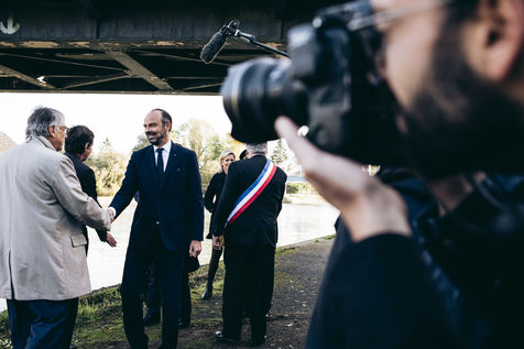 Visit by the Prime Minister, Edouard PHILIPPE, and the Minister for Action and Public Accounts, Gérald DARMANIN, to the Seine-Nord Europe Canal project site along the Sensée canal. The purpose of the visit was to reiterate the French government's commitment to the project.