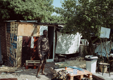 Here, more than thirty undocumented and homeless people are sleeping, living or surviving as best they can, without water or electricity, with a lot of imagination, resourcefulness and the help of several neighbors and associations. They do not all defend the same causes and do not all have the same vision of the place. However, the exceptional circumstances of confinement lead them to meet and try to work together.