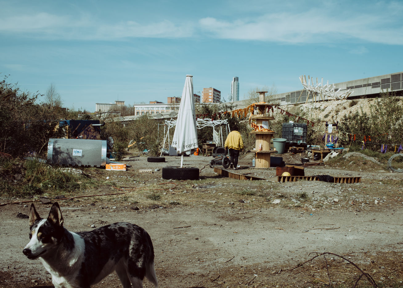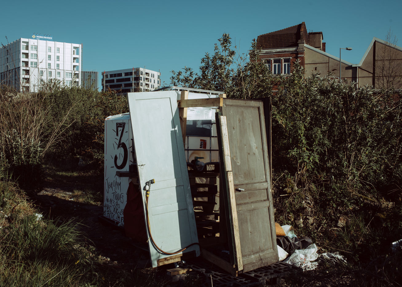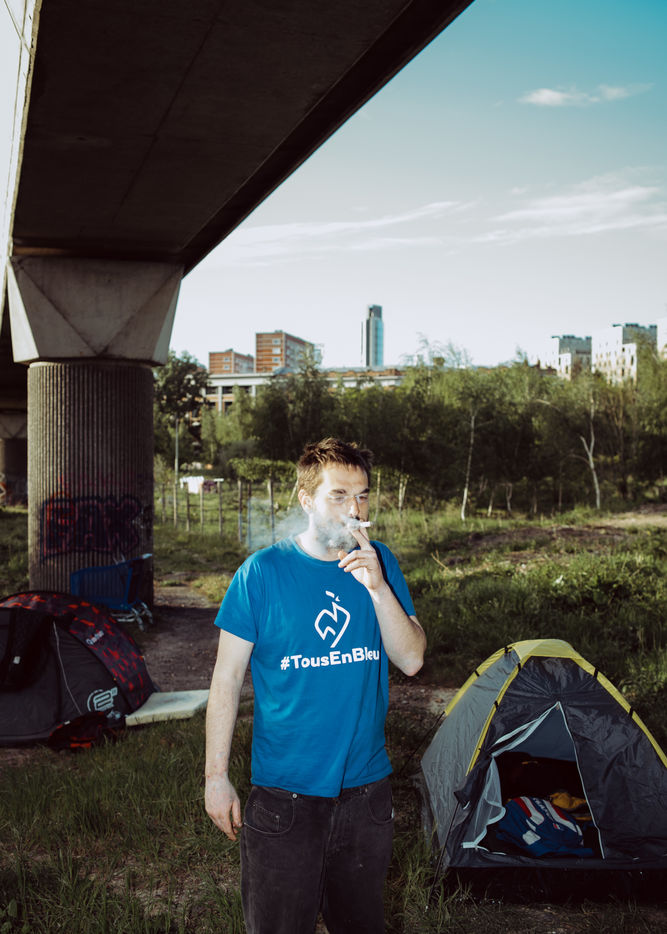 On the other side of the metro line, an imaginary frontier, a few hard drug users had found refuge in a shed that caught fire in troubled circumstances. A new shelter was set up for them to keep them away from the main camp, which is not always easy. It is also on this side that some come to maintain small gardens, to relax, to walk the dogs, or to find themselves on the belvedere which dominates Lille and offers a breathtaking view of the Pasteur Institute. Some are regulars, sometimes activists, others discover the place because of the closing of the parks due to the pandemic.