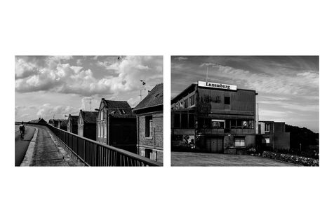HCJ : Les débuts ont été difficiles. J'étais très déprimé. Je me suis souvent fait violence pour photographier. Parfois j'avais juste envie de rester dans la voiture et d'attendre que ça passe. Je n'éprouvais aucun désir pour ces lieux où nous nous arrêtions : airs d'autoroute, zones résidentielles ou industrielles, bords de national, ... Cette frontière est une fiction à laquelle on choisit de croire ou pas. Il fallait constamment chercher des indices, construire un vide habité, c'était très intéressant mais aussi très dur. Du côté de la Belgique, c'est vrai que c'était plus facile car la frontière laisse des traces évidentes. Sur la côte c'était déjà plus compliqué car ce sont des endroits qui ont déjà beaucoup été photographiés. Il fallait sans cesse se rappeler pourquoi on était là, bien respecter le tracé, se laisser porter mais pas trop. L'arc sud-est m'a pour ma part vraiment impressionné : la monoculture, les éoliennes, les routes sans virages, les maisons isolées... Cette monotonie est écrasante mais c'est là que la frontière se révèle dans toute son absurdité. Olivier Véran a parlé de zone traditionnelle de vie en évoquant cette limite des 100 kms. La formulation est elle-même un peu absurde...Parfois, je me demandais ce que je foutais là ! Dans ces lieux que d'habitude, j'aurais simplement traversés sans réfléchir. Cette frontière m'a forcé à poser mon regard là où il n'y a en apparence rien.