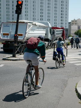 Photos d'illustrations de parisiens et parisiennes se déplaçant à vélo.