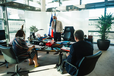 Pour faire face à l'épidémie de Covid-19 et relancer l'économie , le gouvernement a annoncé qu'il mobiliserait 100 milliards d'Euros en deux ans. Un plan de relance basé sur la cohésion (35,4 milliards d'euros), la compétitivité (34,8 milliards) et l'écologie (30,2 milliards). Immersion le temps d'une journée, à Bercy, dans les pas de Bruno Le Maire, le ministre de l'Economie et des Finances et de ses collaborateurs. Un reportage issu d'une commande pour le magazine Capital, publié en octobre 2020.