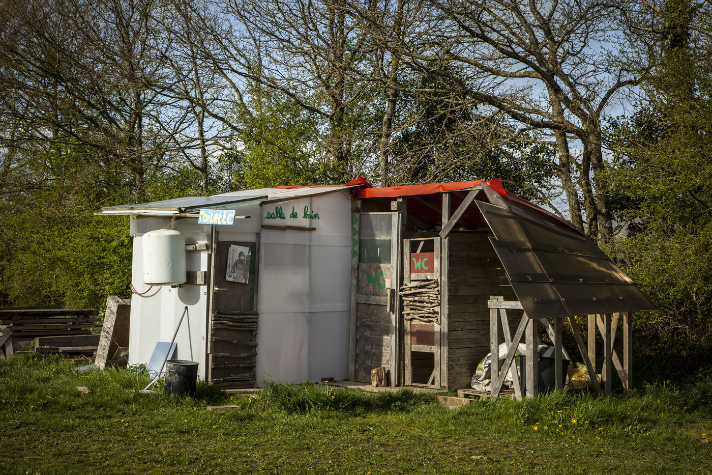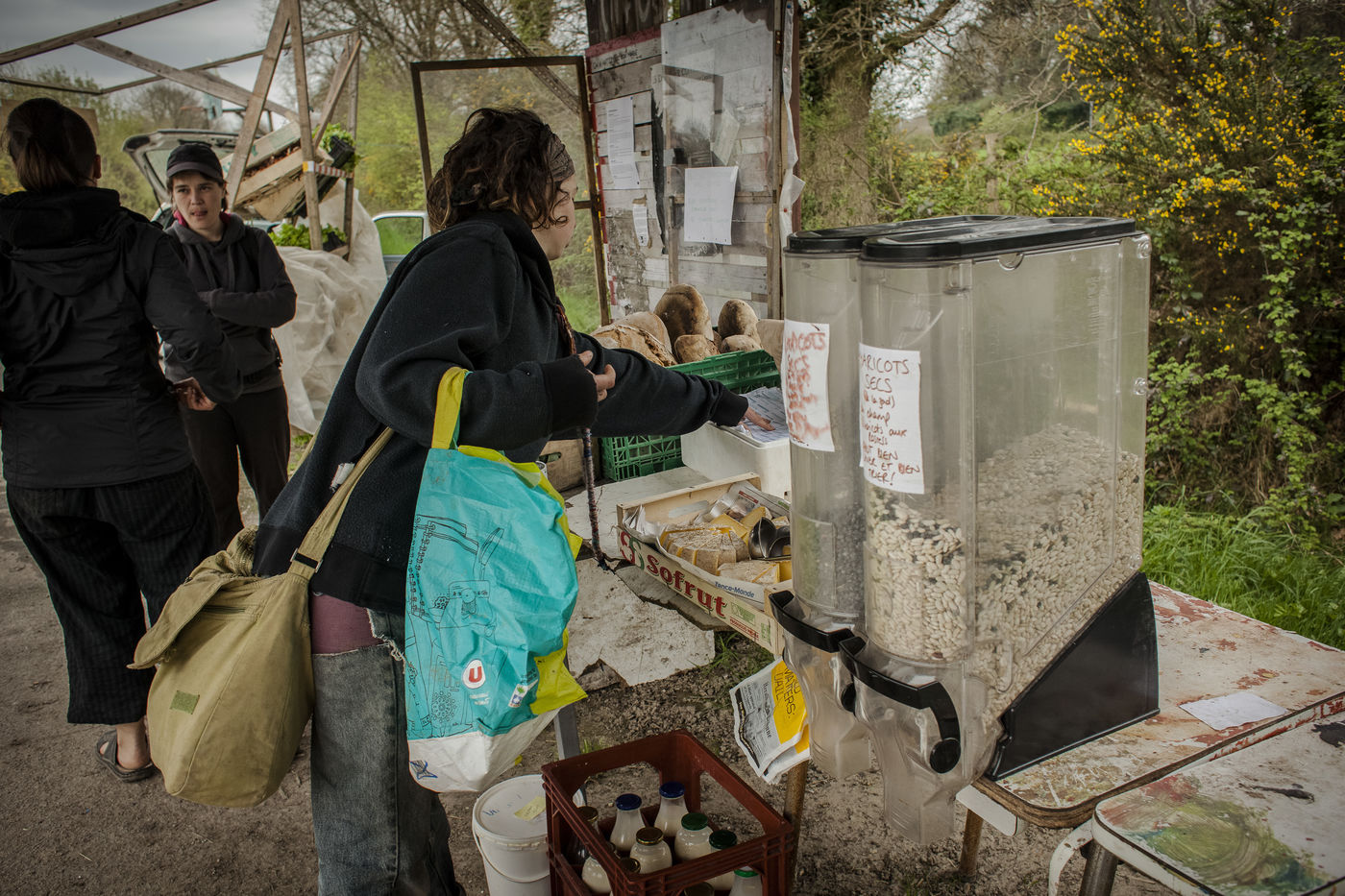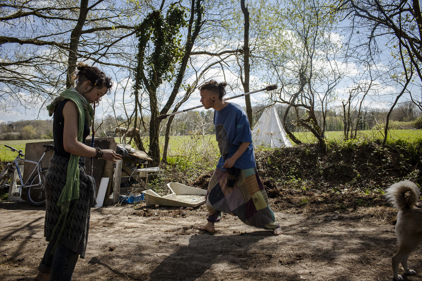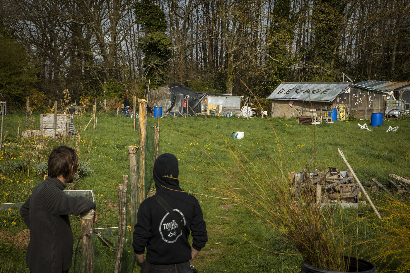Après plusieurs reportages sur place, j'y suis retourné en Avril pour documenter la vie de certains collectifs, l'organisation politique des occupants et l'avancée des constructions sur place. La construction de cabanes autobaties, autoconstruites, écologistes et alternatives ont encore progressé ; mais surtout le collectif de la Ferme de Bellevue m'a accueilli dans une ferme qu'ils occupent : des ateliers, des vaches, des réunions, des rêves et beaucoup d'amour au programme.