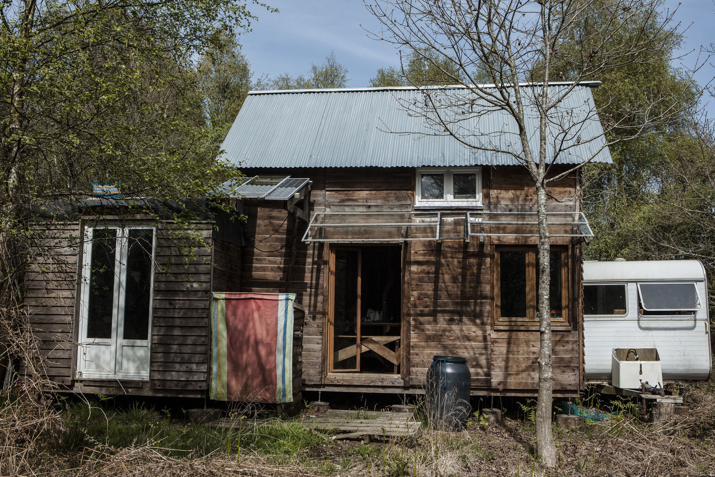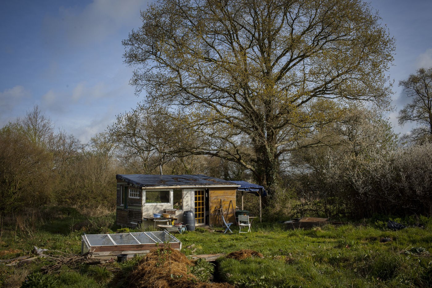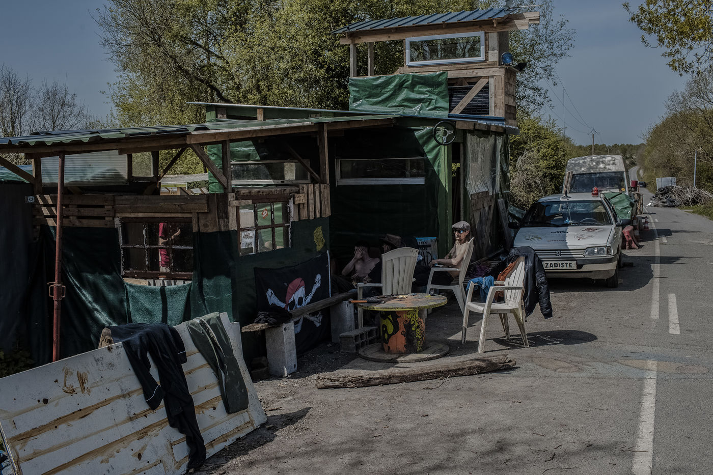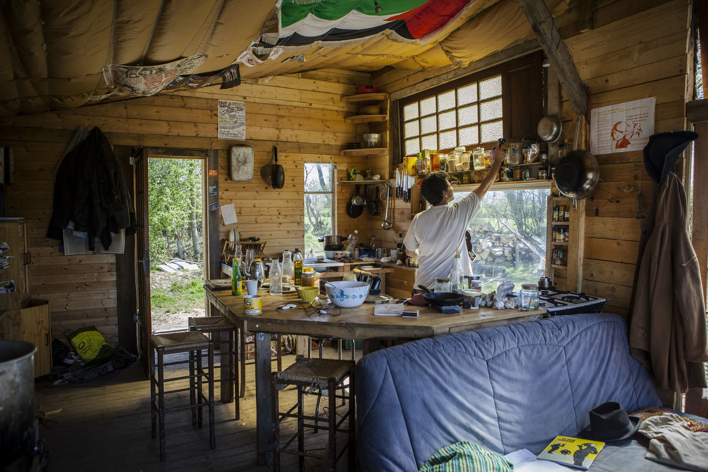 Après plusieurs reportages sur place, j'y suis retourné en Avril pour documenter la vie de certains collectifs, l'organisation politique des occupants et l'avancée des constructions sur place. La construction de cabanes autobaties, autoconstruites, écologistes et alternatives ont encore progressé ; mais surtout le collectif de la Ferme de Bellevue m'a accueilli dans une ferme qu'ils occupent : des ateliers, des vaches, des réunions, des rêves et beaucoup d'amour au programme.