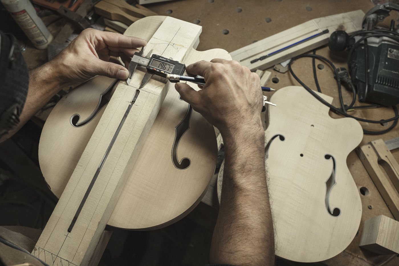 Aurelien Bontemps est un artisan luthier. Il pense et fabrique des guitares dans son atelier a Grabels dans l Herault.