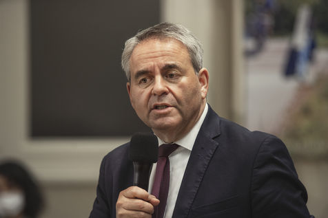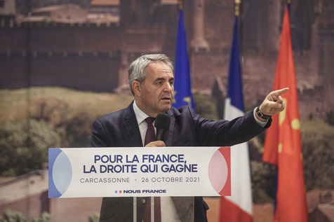 Xavier Bertrand, president de la region Hauts-de-France et candidat a l election presidentielle 2022, est a Carcassonne dans l Aude pour une reunion publique avec les adherents de l UMP.